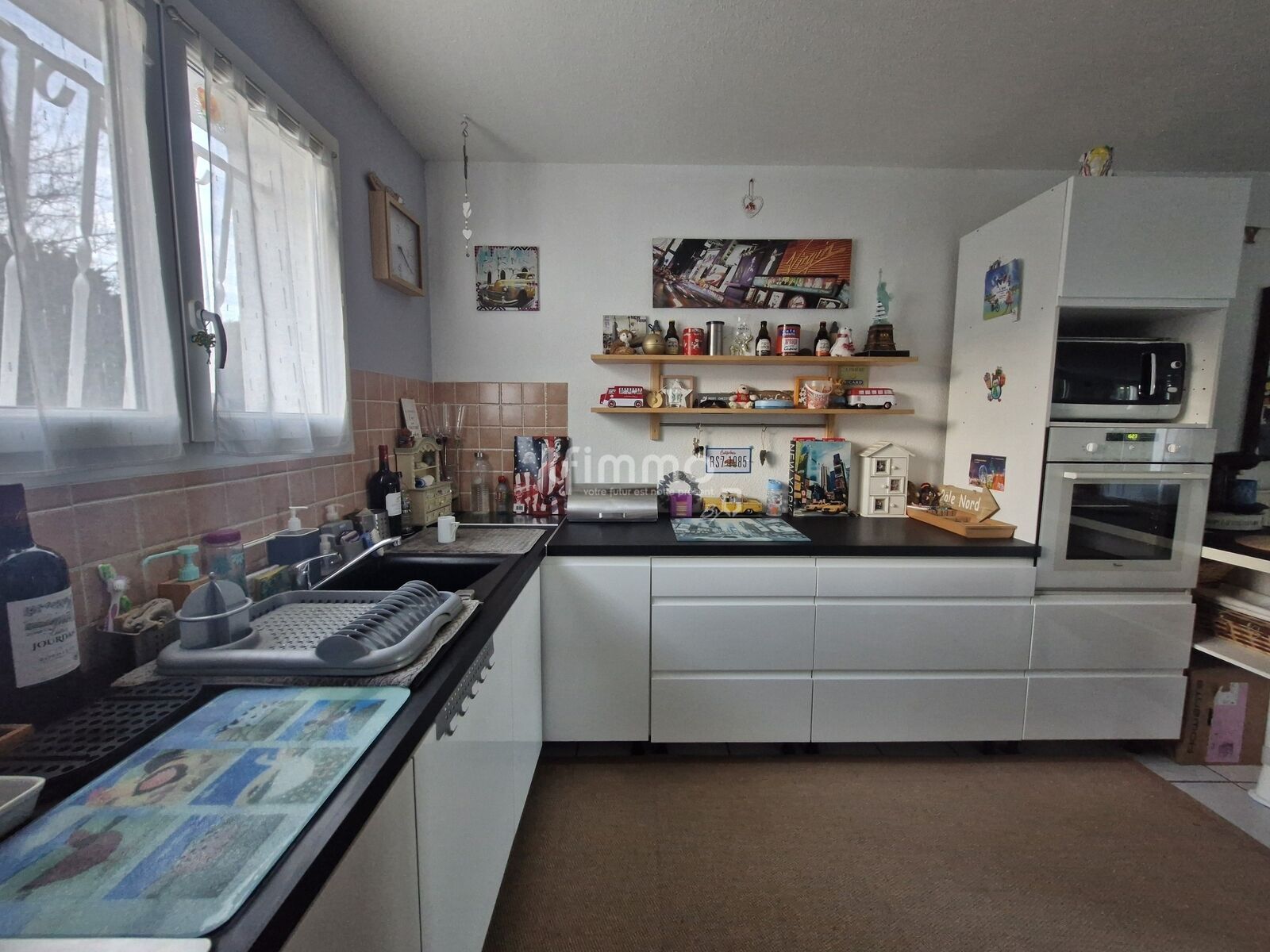 Cuisine rénovée en 2025, d’environ 10 m², entièrement équipée (four, plaque gaz, évier, rangements)
