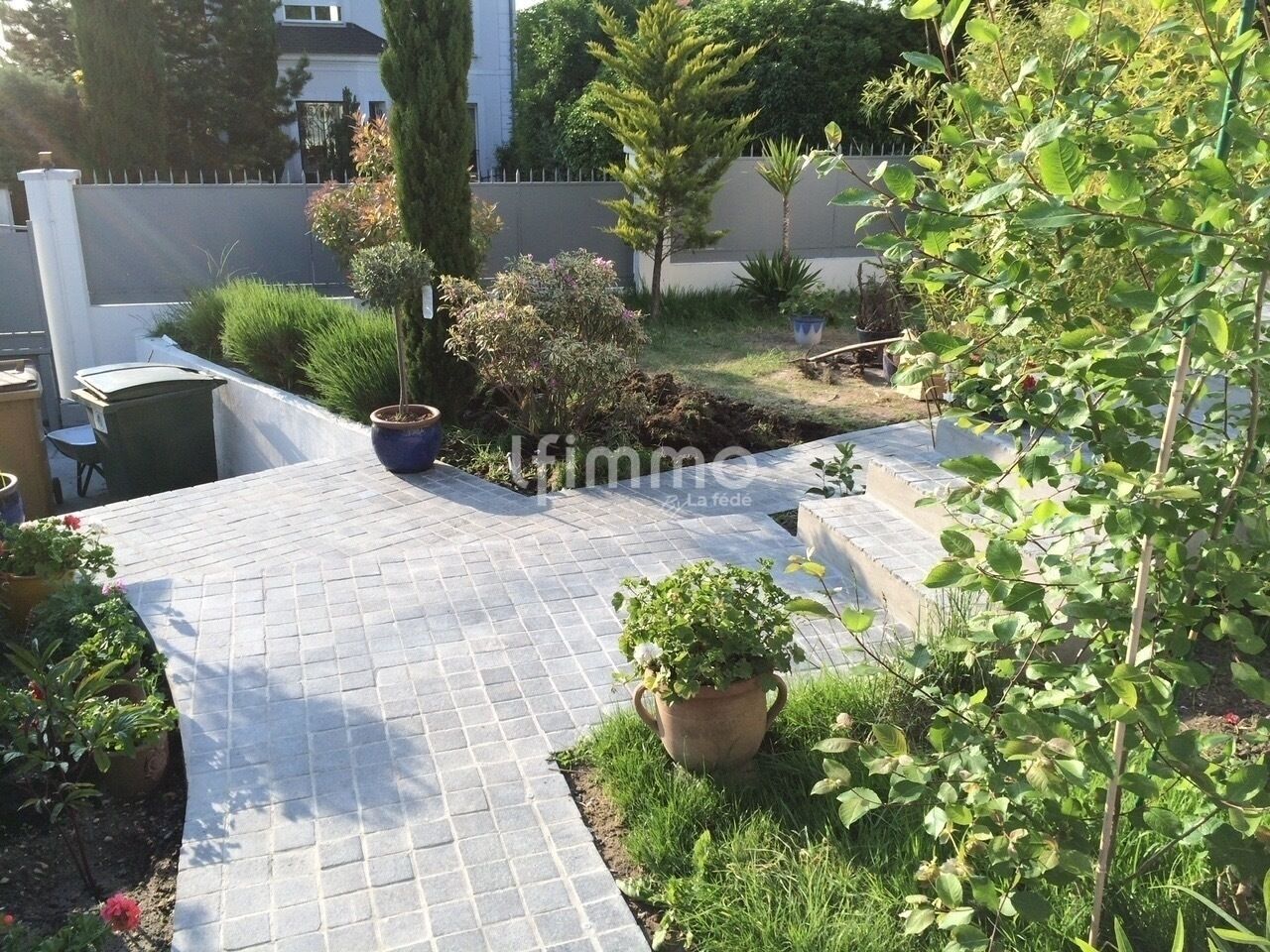 L’ensemble est situé sur un joli terrain de 450 m2 sans vis a vis comprenant un portail automatique coulissant avec accès direct au garage et à la cour lesquels pouvant accueillir trois véhicules ainsi qu’ un abri de jardin.