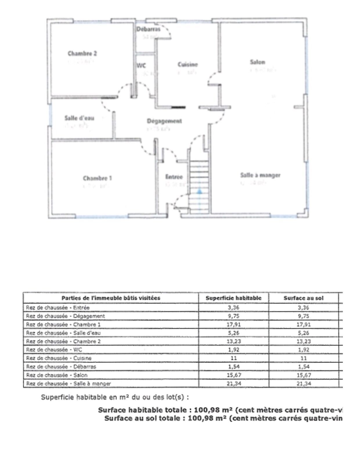 Maison plain-pied saine, 4 pièces, d’environ 101m2 habitables avec une dépendance, un jardin et un potager, le tout sur une parcelle de 7,98 ares.