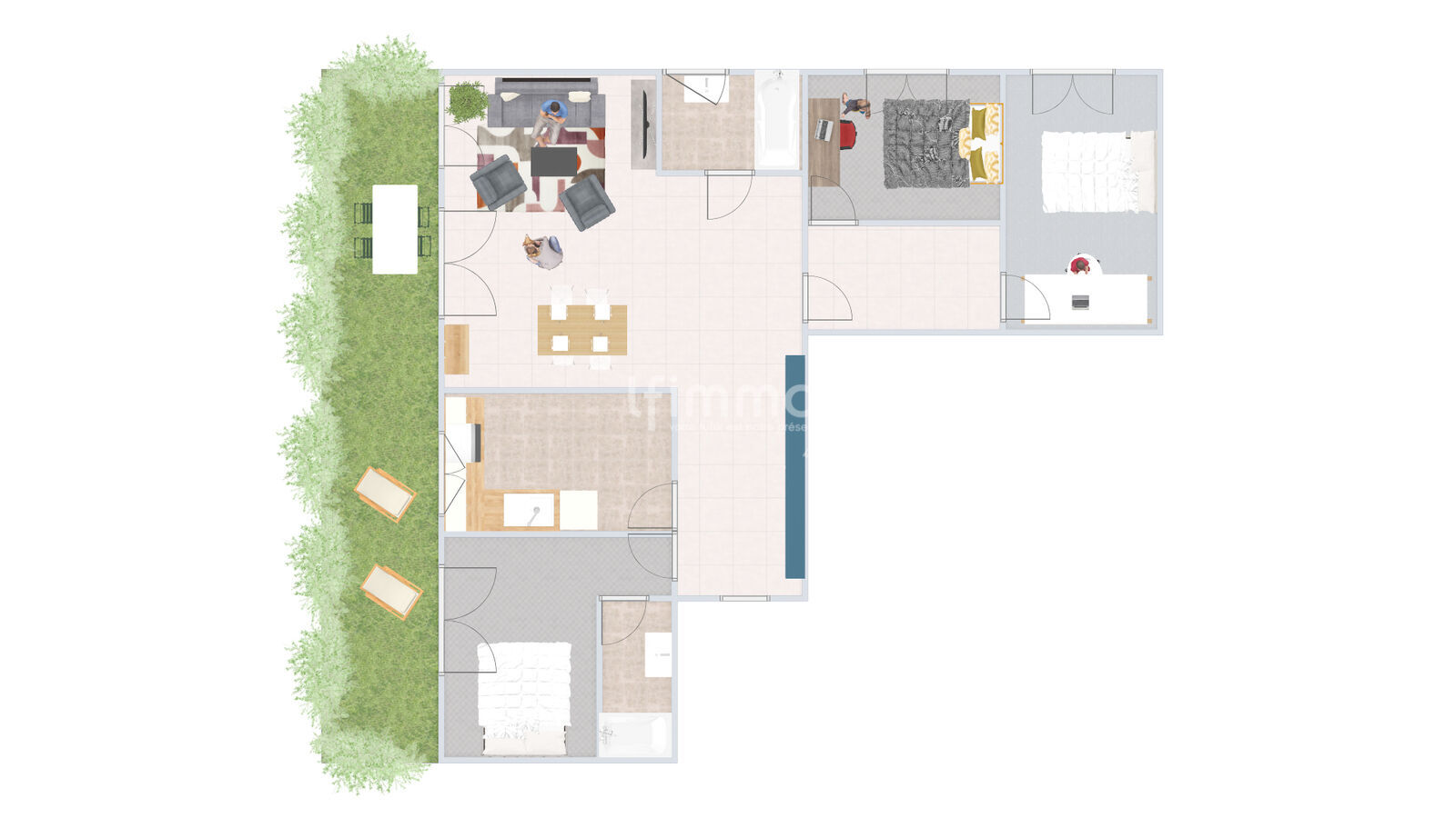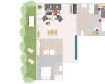 Il se compose d’un séjour d’environ 25 m² ouvrant directement sur un jardin privatif (25 m²), donnant sur les jardins de la résidence, un véritable atout pour profiter d’un extérieur au calme. La cuisine fermée de 10 m² peut être ouverte pour créer une belle pièce de vie entièrement décloisonnée.