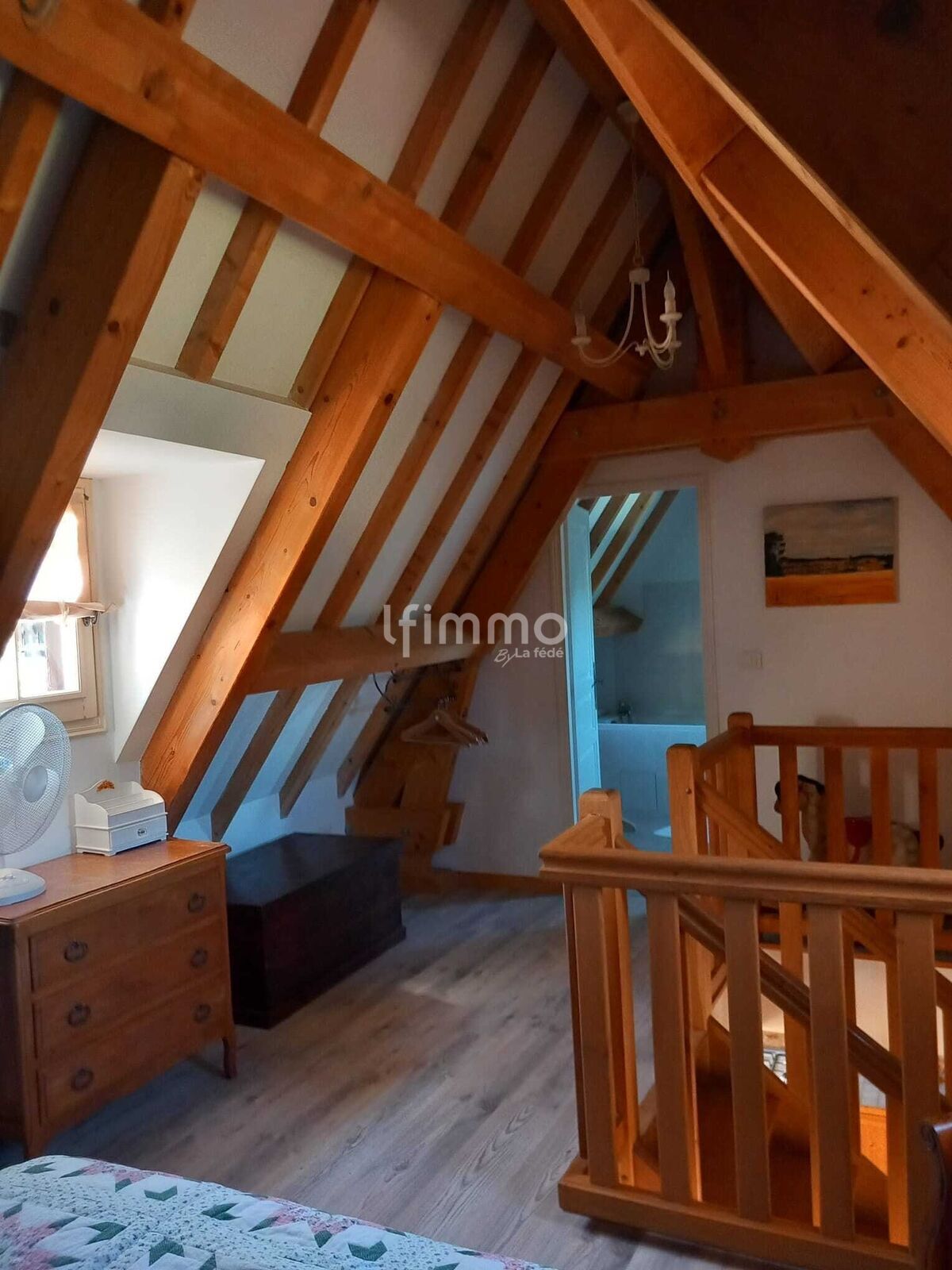 - une longère de 88m², comprenant un séjour avec cuisine équipée, une grand chambre de 25m², deux autres chambres, une salle d'eau, un WC. L'étage, déjà isolé, comporte une pièce et un grenier, pouvant également être aménagé. Ce bâtiment possède un diagnostic énergétique classé F (344 kWh/m²/an) et C (14 kCO²/m²/an).