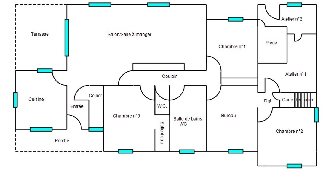 Le bien se compose de six pièces dont quatre chambres, une avec sa salle d'eau, un coin bureau/chambre d'appoint, une salle de bain avec douche, baignoire et toilette, un 2eme wc.
