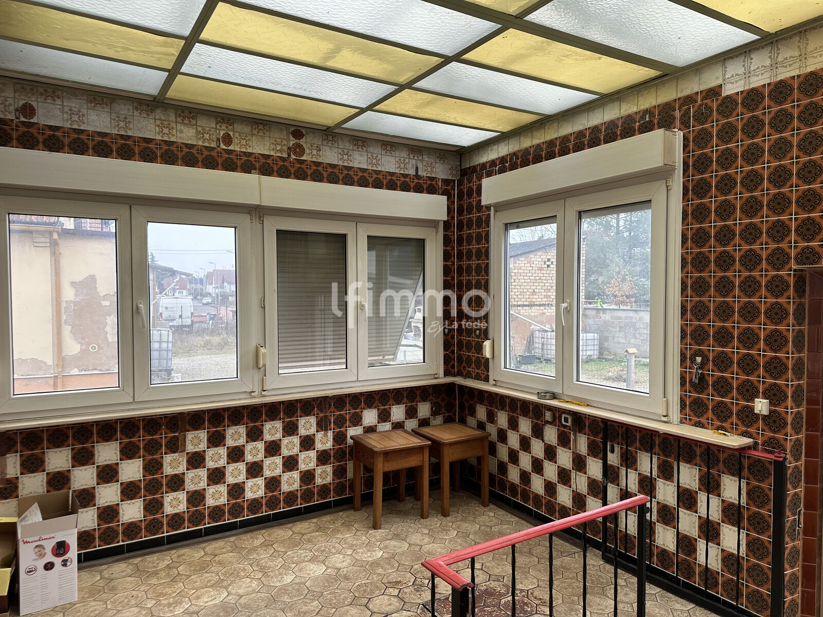 À l’arrière de la maison, une extension de type véranda couverte vient compléter le rez-de-chaussée. Celle-ci permet notamment, via l’ouverture d’une trappe, l’accès à un sous-sol complet, occupant toute la surface de la maison, offrant ainsi un espace supplémentaire appréciable pour le stockage ou d’autres usages.