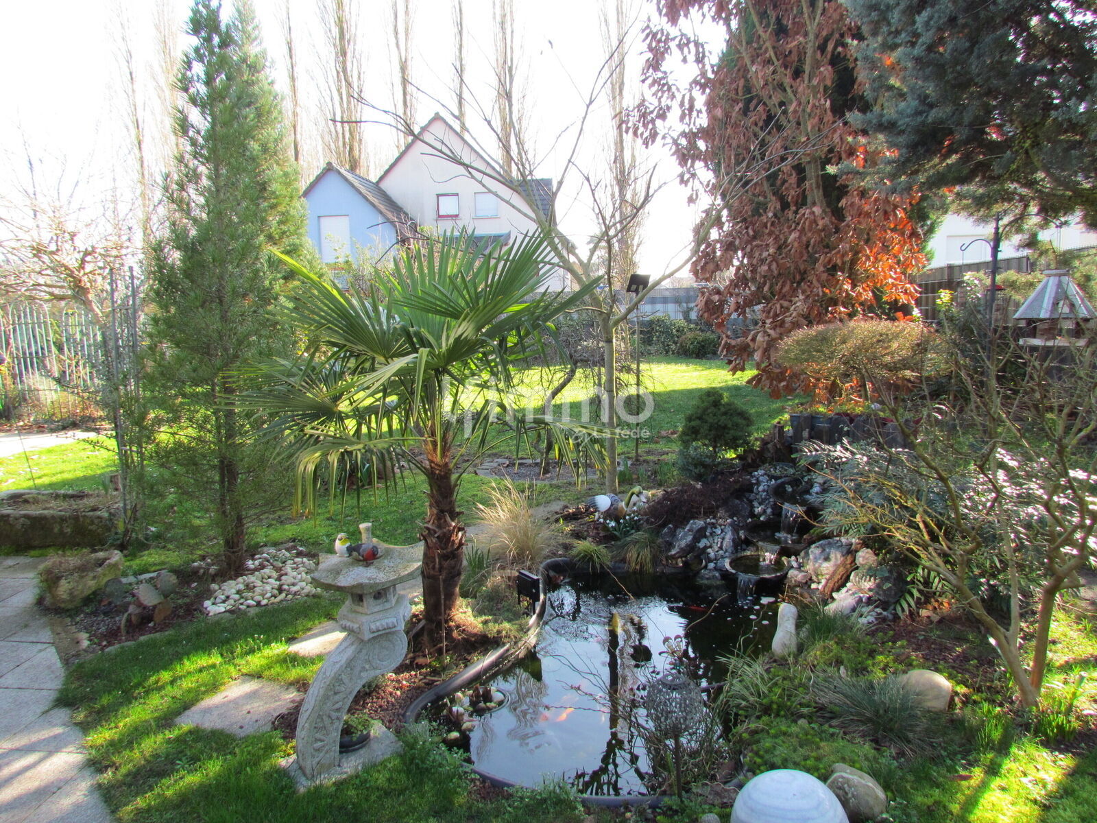 Très beau jardin clôturé, aménagé avec une terrasse couverte, arboré et peu de vis-à-vis.