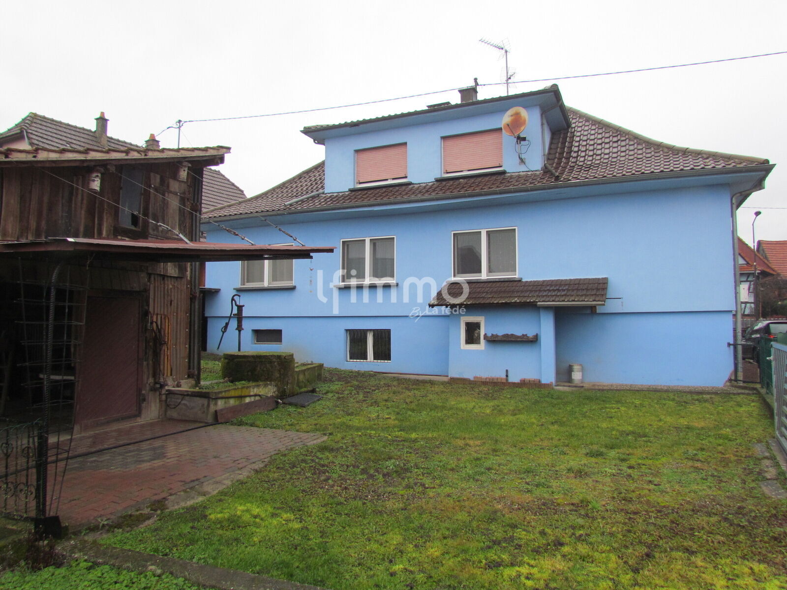 A l’arrière de la maison se trouve une dépendance, un jardin et un potager, le tout avec une vue dégagée.