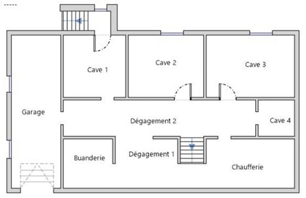 -Une entrée, un couloir, une descente au sous-sol et une montée à l’étage