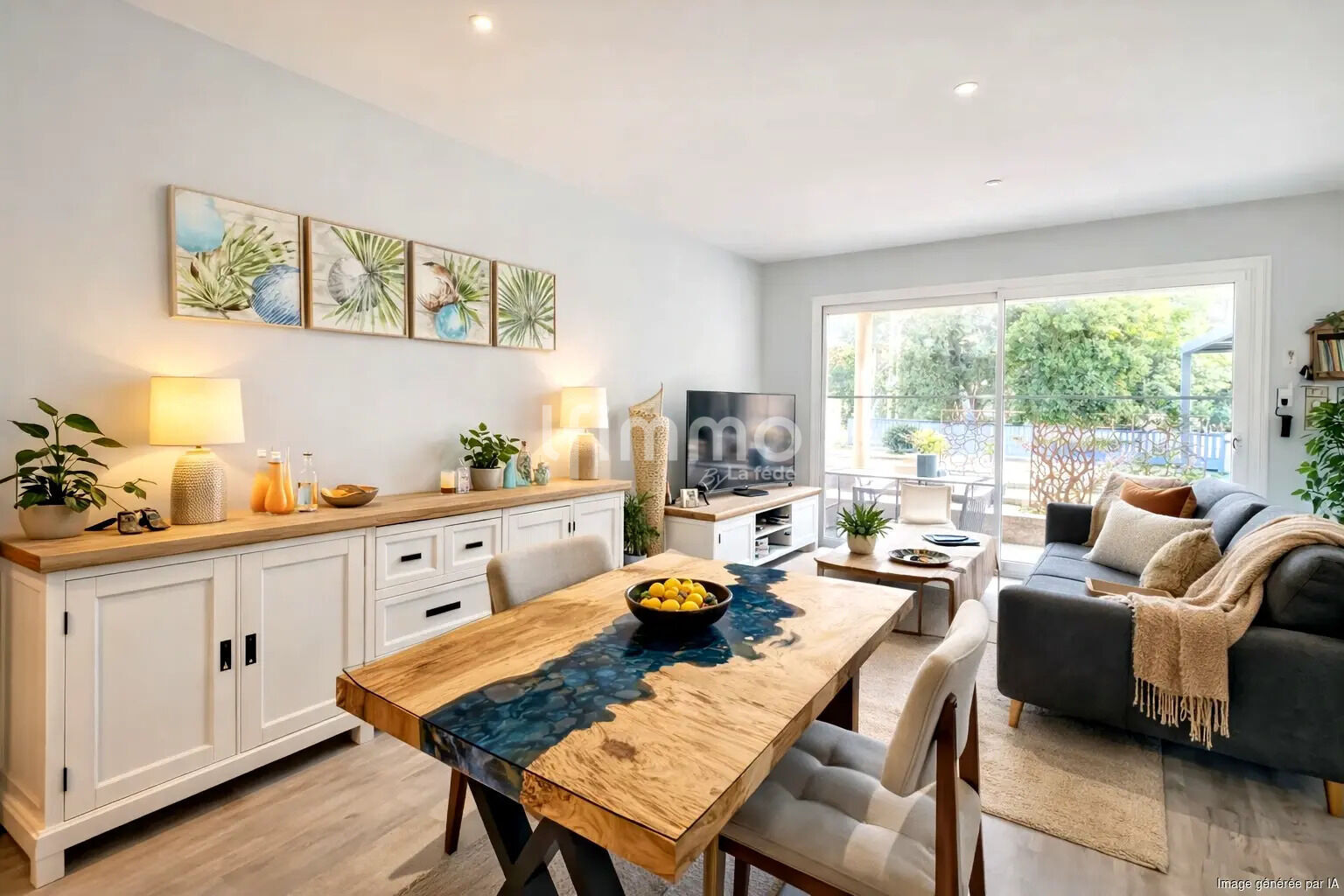 Maison de plain-pied entièrement rénovée en 2023, avec garage isolé de 20 m² communiquant directement avec le salon.