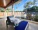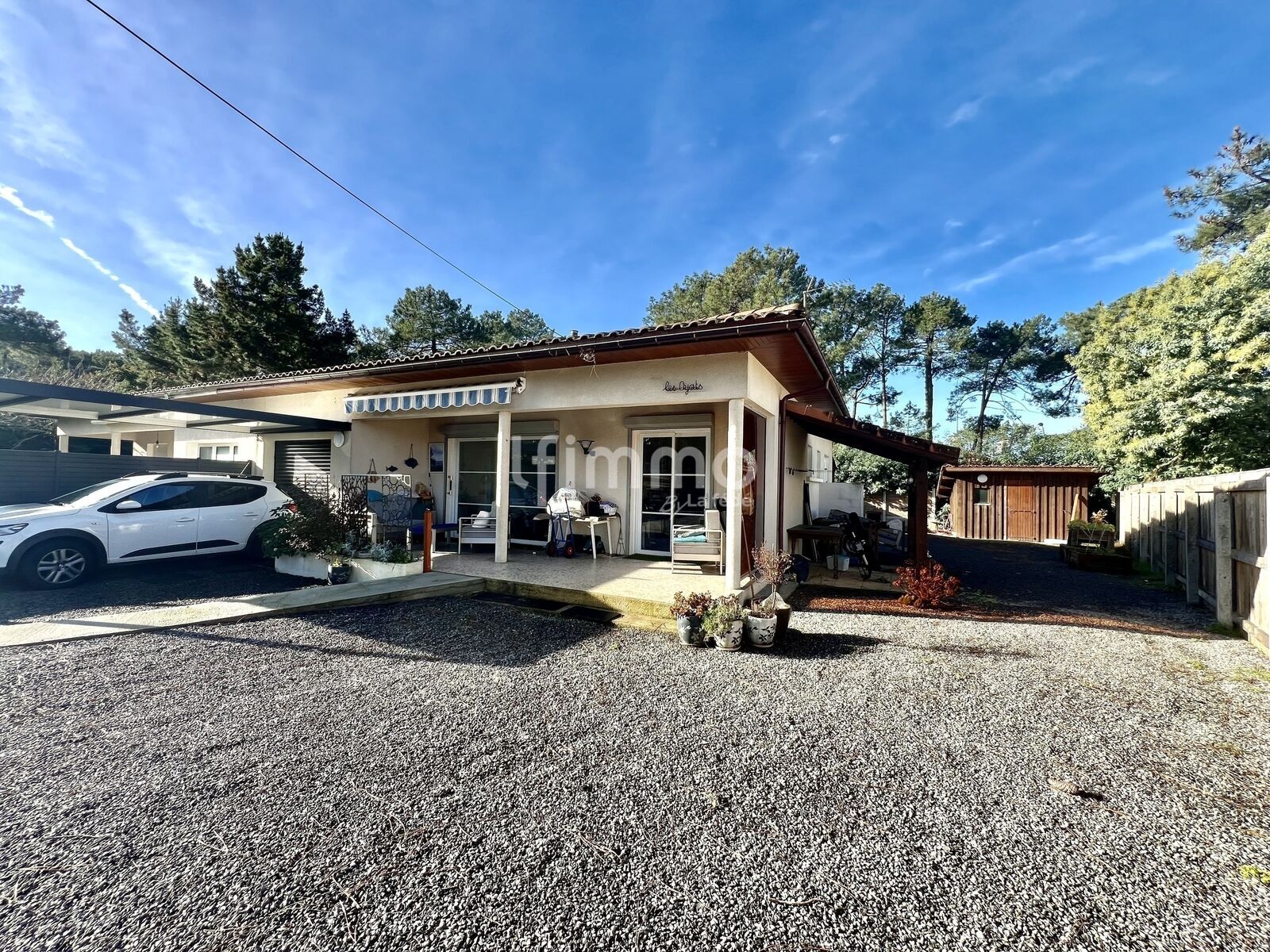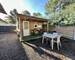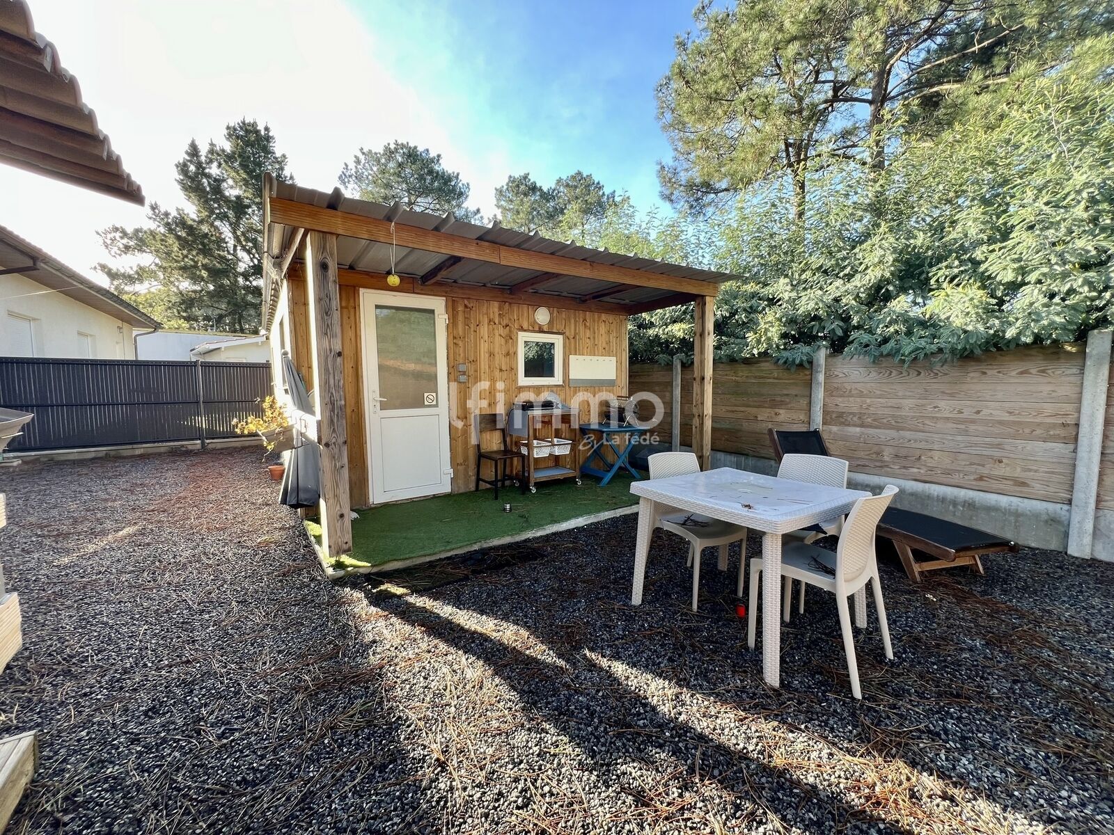 Vous apercevrez un jardin aménagé, avec une terrasse devant et une seconde derrière la maison, une douche extérieure, un portail électrique ,cabanon de rangement d'environ 15m² et un chalet indépendant de 20m² complètement aménagé. Il se compose d’une pièce de vie avec sa kitchenette, une chambre et une salle d’eau avec wc. Celui-ci peut être louer pour la saison.