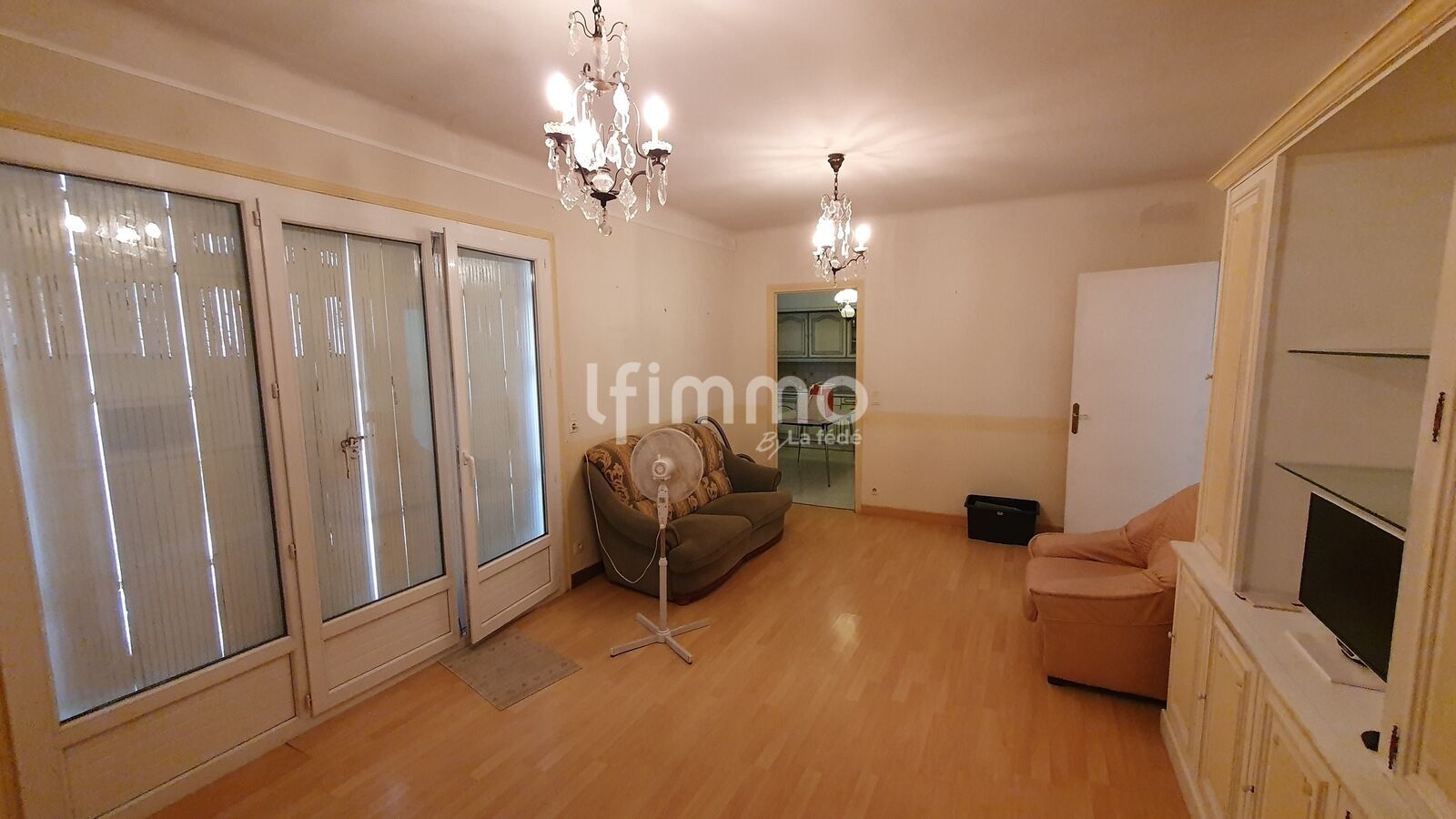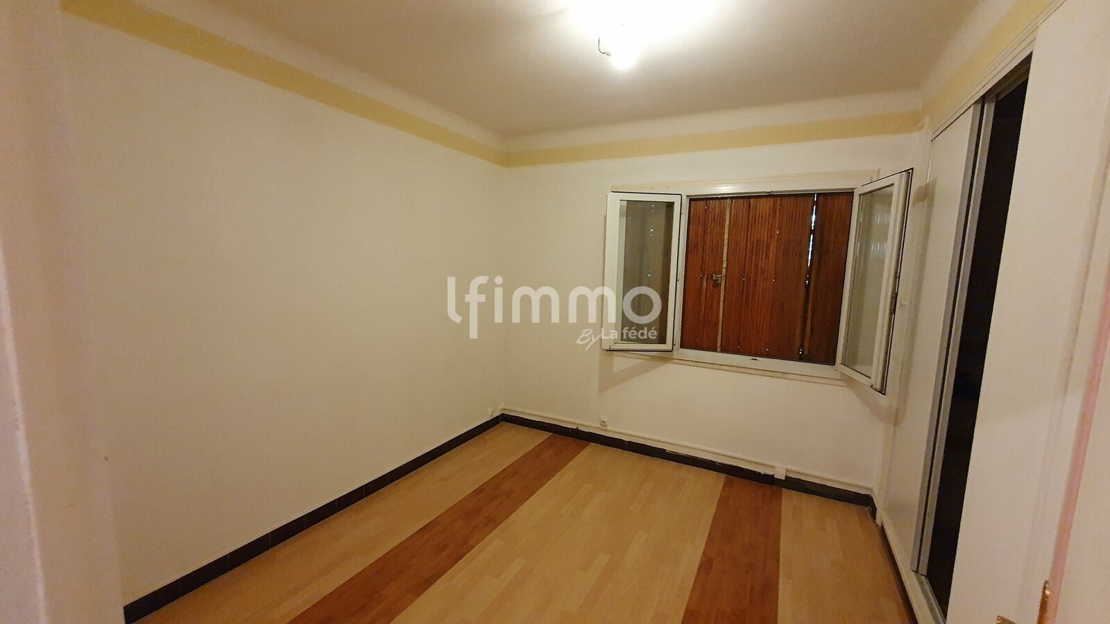Salon / salle à manger : ~24 m² (parquet, fibre, double vitrage, volets bois)