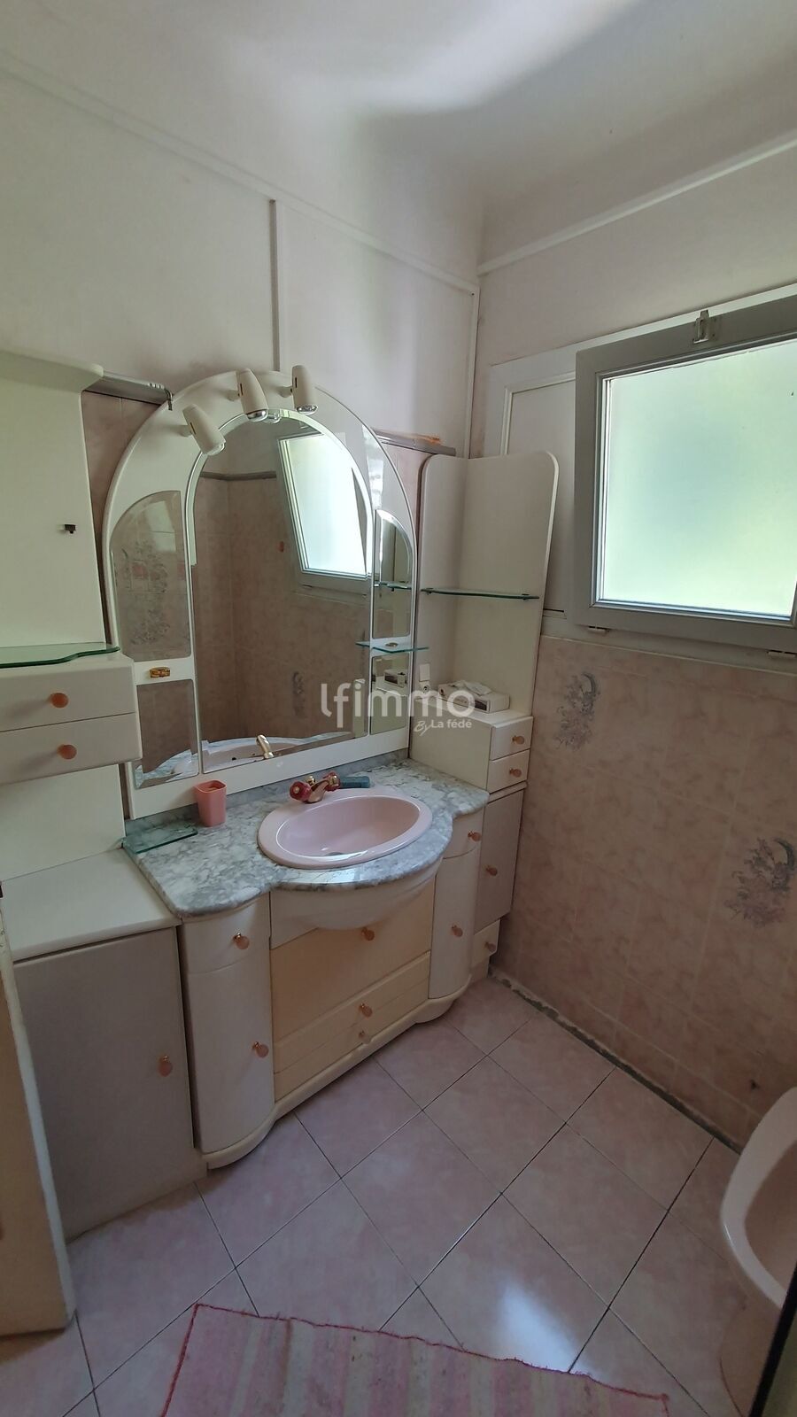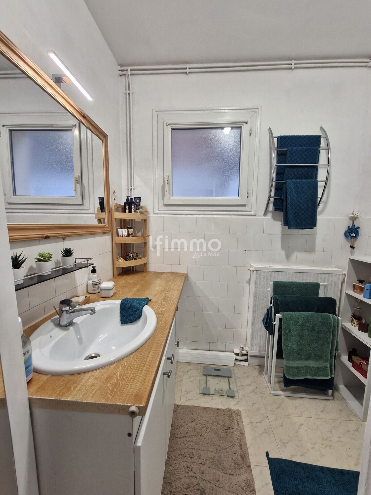 Salle d’eau : ~4 m² (douche, vasque, double vitrage PVC)
