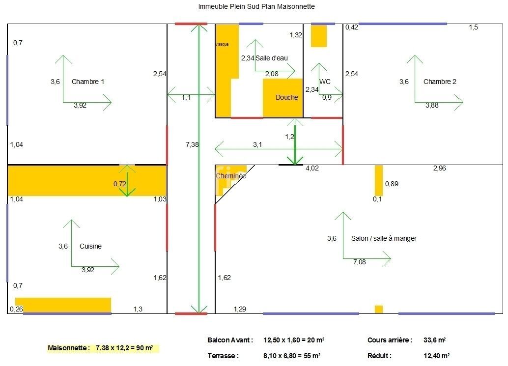 Salle d’eau : ~4 m²