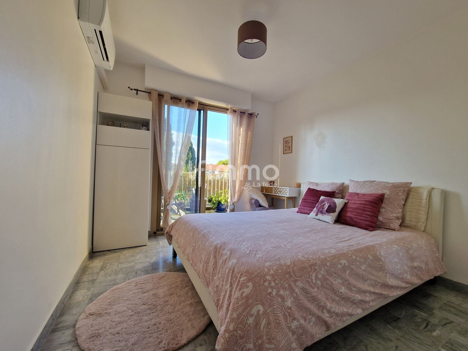 L’appartement bénéficie d’équipements modernes tels qu’un chauffage par climatisation réversible, garantissant une température agréable en toute saison, des baies vitrées récentes en double vitrage volets roulants électriques et des espaces de rangement.