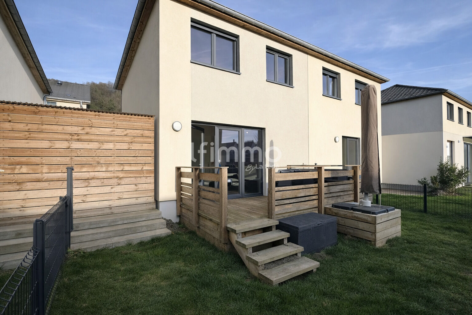 Construction 2021 — 5 pièces — terrain 52m² orientée sud — panneaux solaires — chaudière à condensation — isolation récente — DPE B — aucun travaux à prévoir.