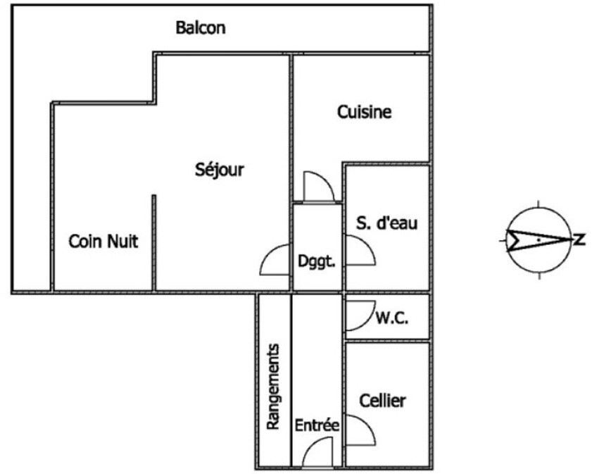 Ce logement se compose de deux pièces principales, dont une chambre semi-ouverte (facilement cloisonnable) , une salle d’eau indépendante et d’un WC séparé. L’agencement optimise l’espace disponible pour un confort quotidien.