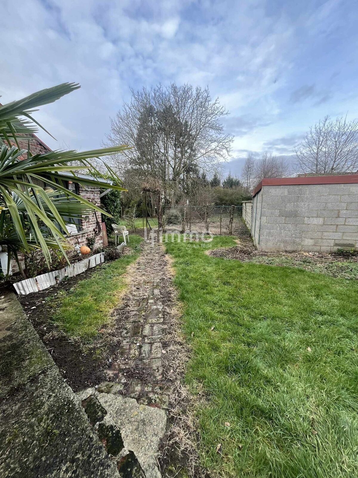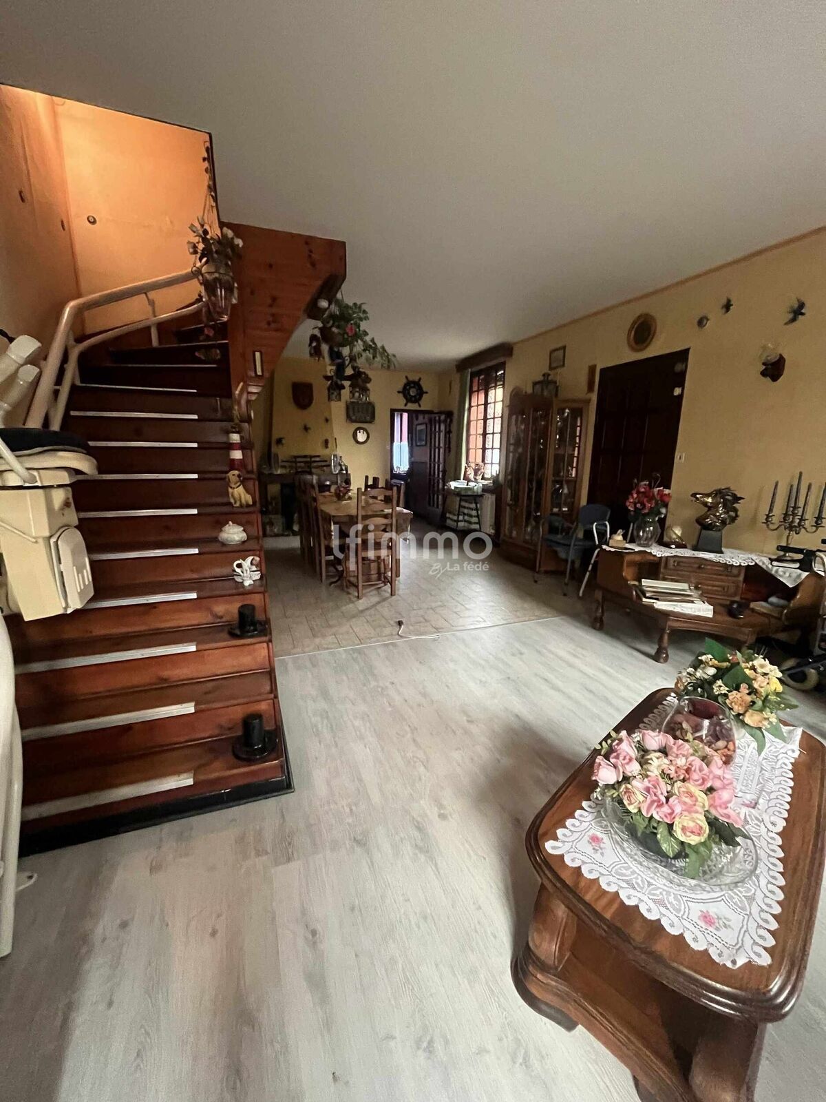 Maison individuelle de 103 m² sur un terrain de 870 m². Au rez‑de‑chaussée: salon/séjour avec cheminée, cuisine indépendante, véranda lumineuse, WC, salle de bain. À l’étage: 2 chambres, WC lavabo. Cave et garage. Chauffage gaz et électrique. Proche commerces/écoles/transports.