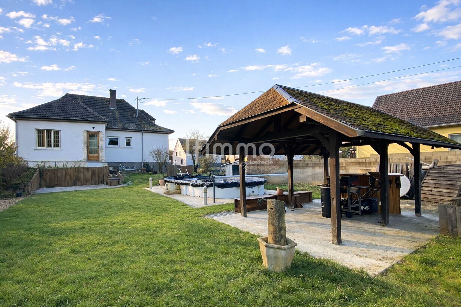 Construite en 1965, la maison se compose de sept pièces dont quatre chambres, offrant ainsi un espace de vie confortable et modulable. Elle comprend également deux salles d'eau et deux WC, répondant aux besoins d’une famille. La cuisine ouverte sur le salon favorise le partage en vie de famille autour de bons repas. Le jardin offre des extérieurs faits pour la convivialité : terrasse, piscine et abri couvert.