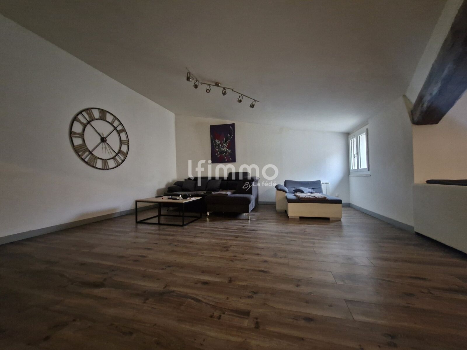 Très grand espace salon de 63,41m² environ , Volet en bois. 2 fenêtres en PVC, double vitrage.