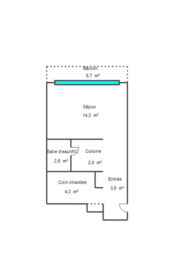 L’appartement se compose d’une pièce principale lumineuse avec coin nuit, d’un espace cuisine, d’une salle de bains avec Wc et de rangements.