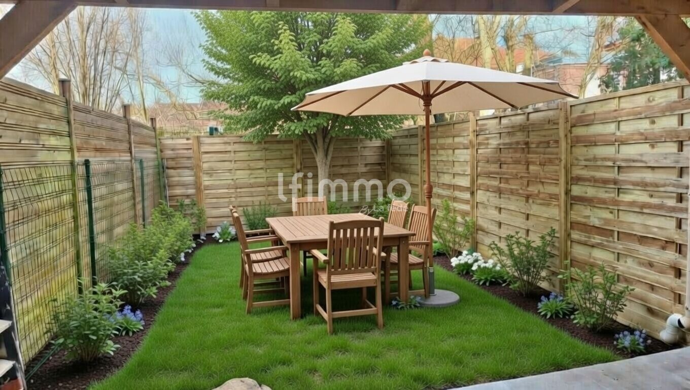 L'ouverture de la cave est electrique. La maison à l'avantage d'avoir une terasse et un jardin le tout sur environ 30m²