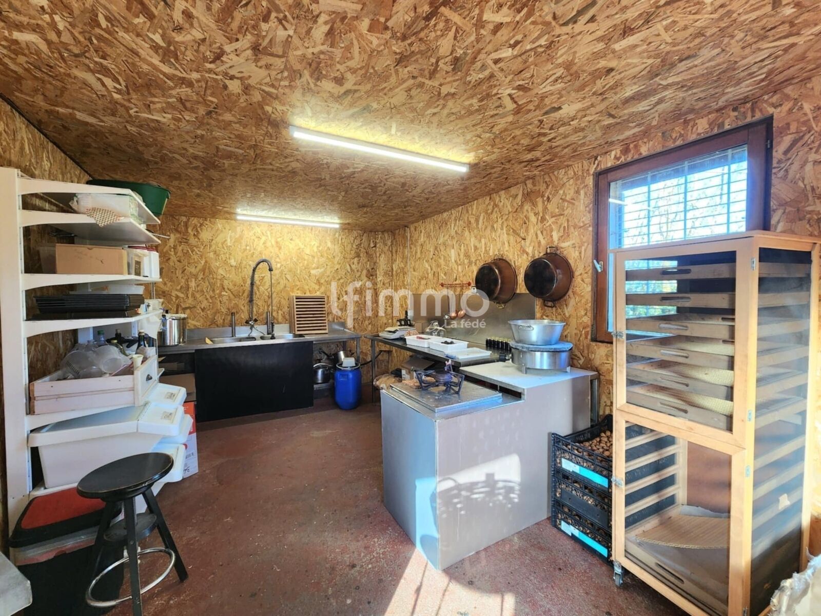 La troisième bâtisse, d’environ 55 m² au sol, comprend un garage/atelier avec accès à une mezzanine de stockage d’environ 20 m² ainsi qu’un espace de 35 m² dédié à une activité artisanale comprenant une partie laboratoire et un espace de commercialisation, avec possibilité de modifier la destination selon votre projet.