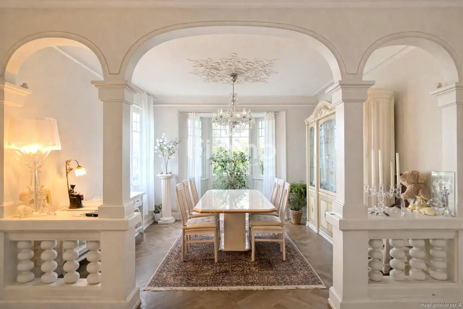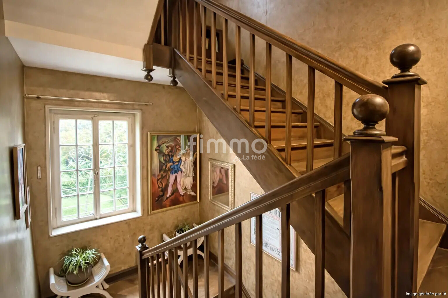 Avec ses 172 m², cette propriété se distingue par ses neuf pièces lumineuses, dont 4 chambres spacieuses. Le séjour, agrémenté d’une cheminée avec insert, promet des instants chaleureux installé confortablement dans un canapé. Une salle de bain composée de meubles anciens authentiques complète cet ensemble, accompagné de toilettes à chaque étage.