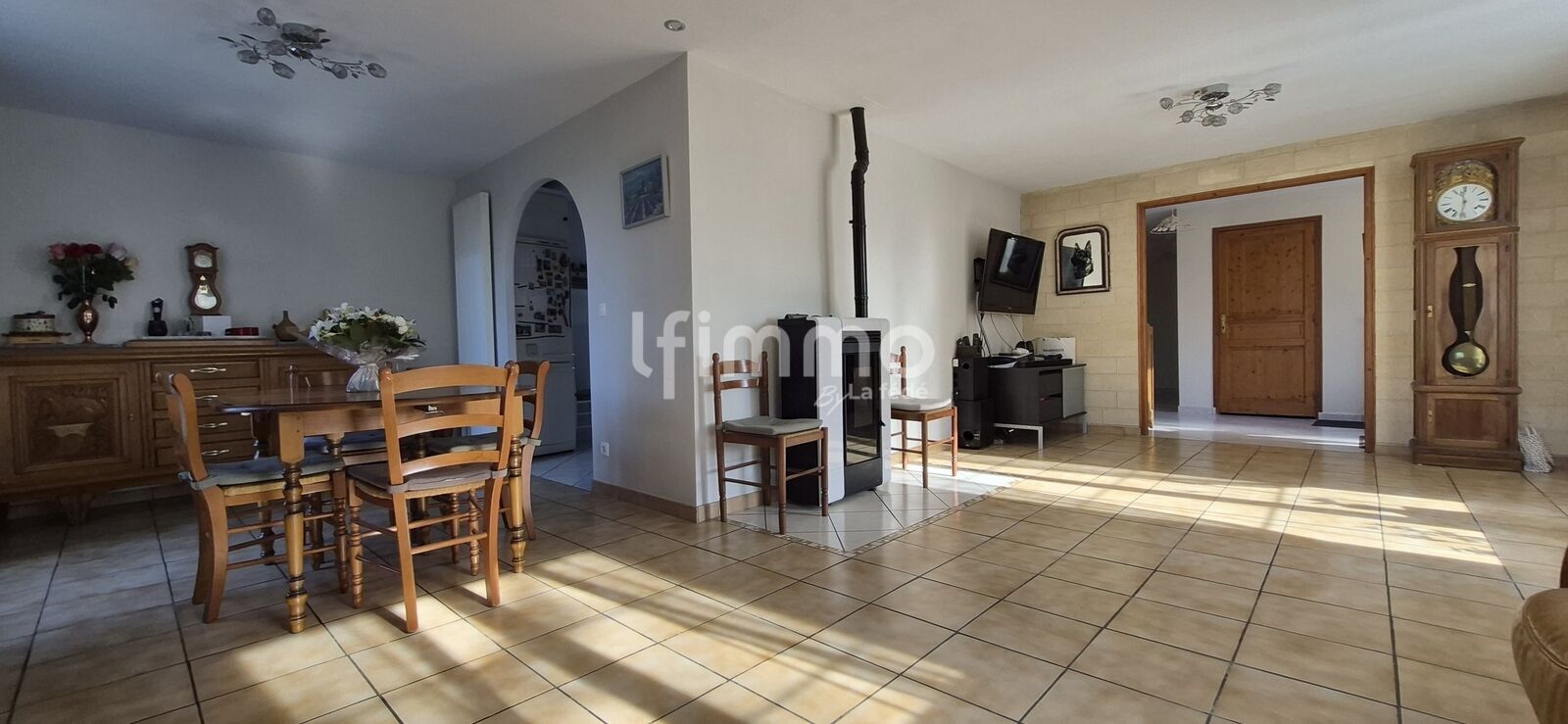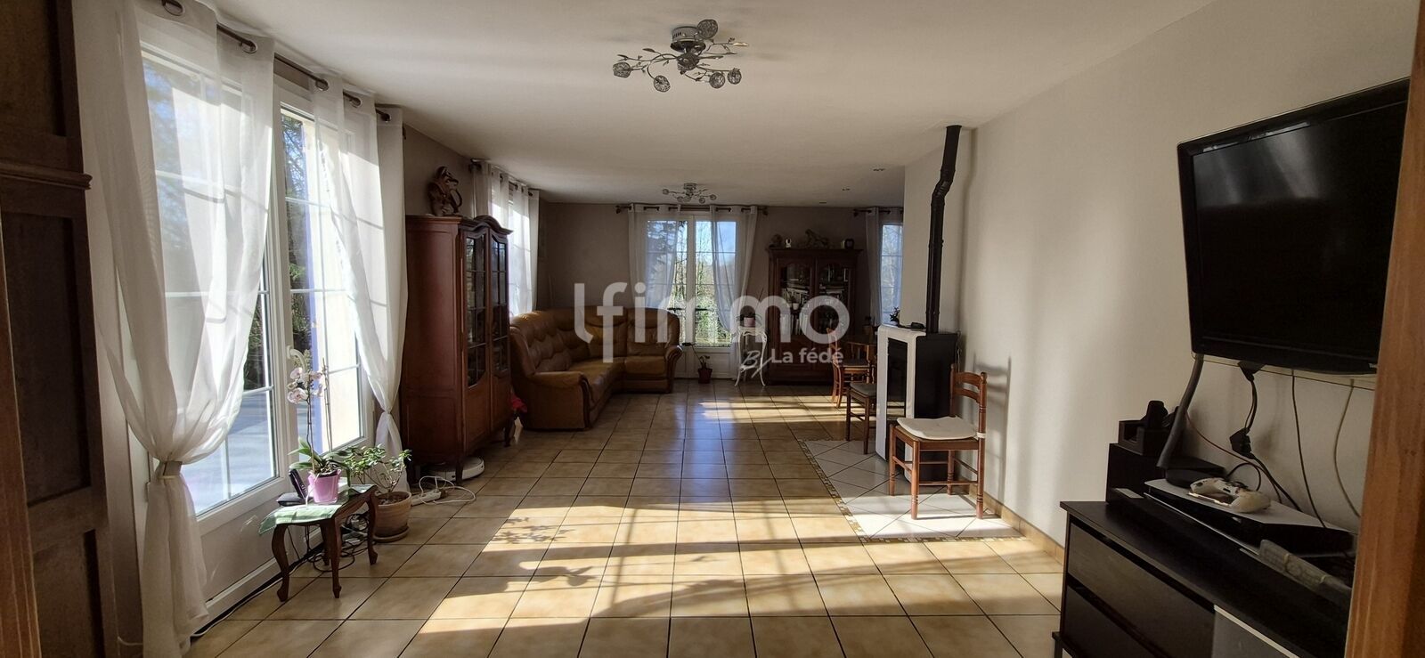 Entrée avec dégagement, cellier / buanderie séjour / salle à manger avec poêle à granulés, cuisine indépendante, wc avec point d’eau, 4 chambres,
