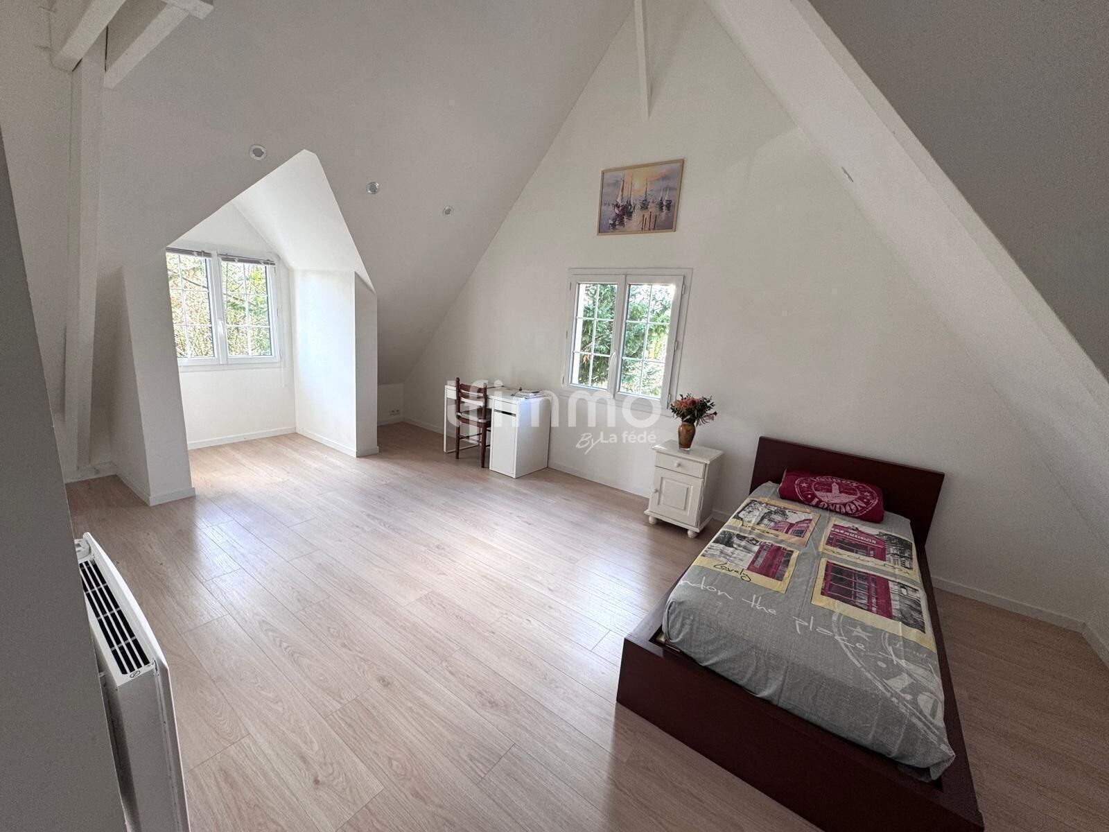 Elle propose une configuration rare, avec une vie de plain-pied au rez-de-chaussée et des combles entièrement aménagés dans un esprit plus contemporain.