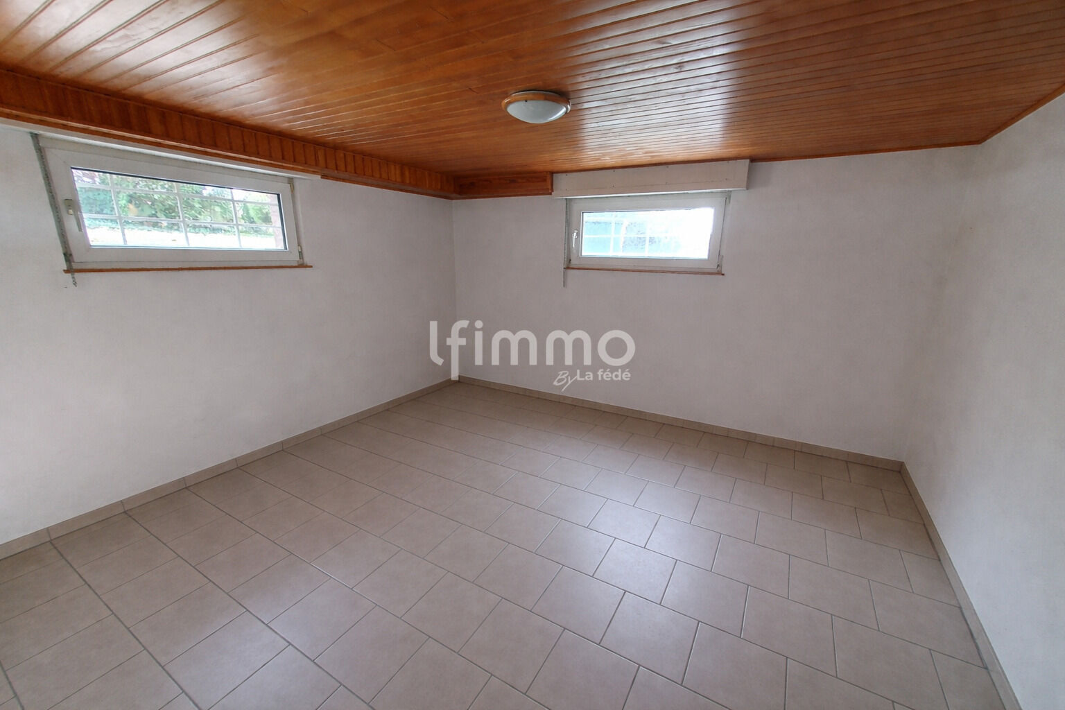 Le sous-sol entièrement carrelé. Il comporte, une cave, une salle de bain avec toilette, des espaces de rangement, une pièce cuisine chaufferie, un couloir, une pièce bureau, un espace musique et un accès vers l'extérieur.