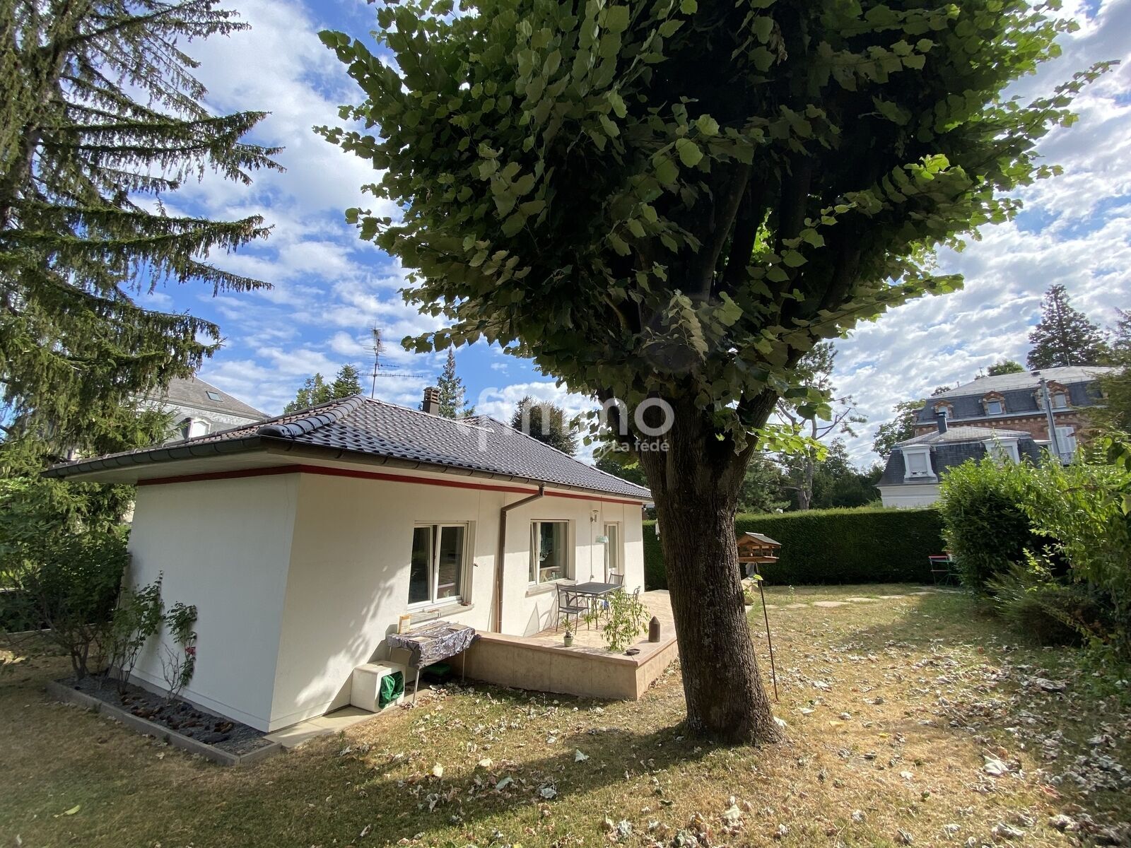 Le terrain clos et paysagé offre un cadre de vie rare à cette distance du centre-ville.