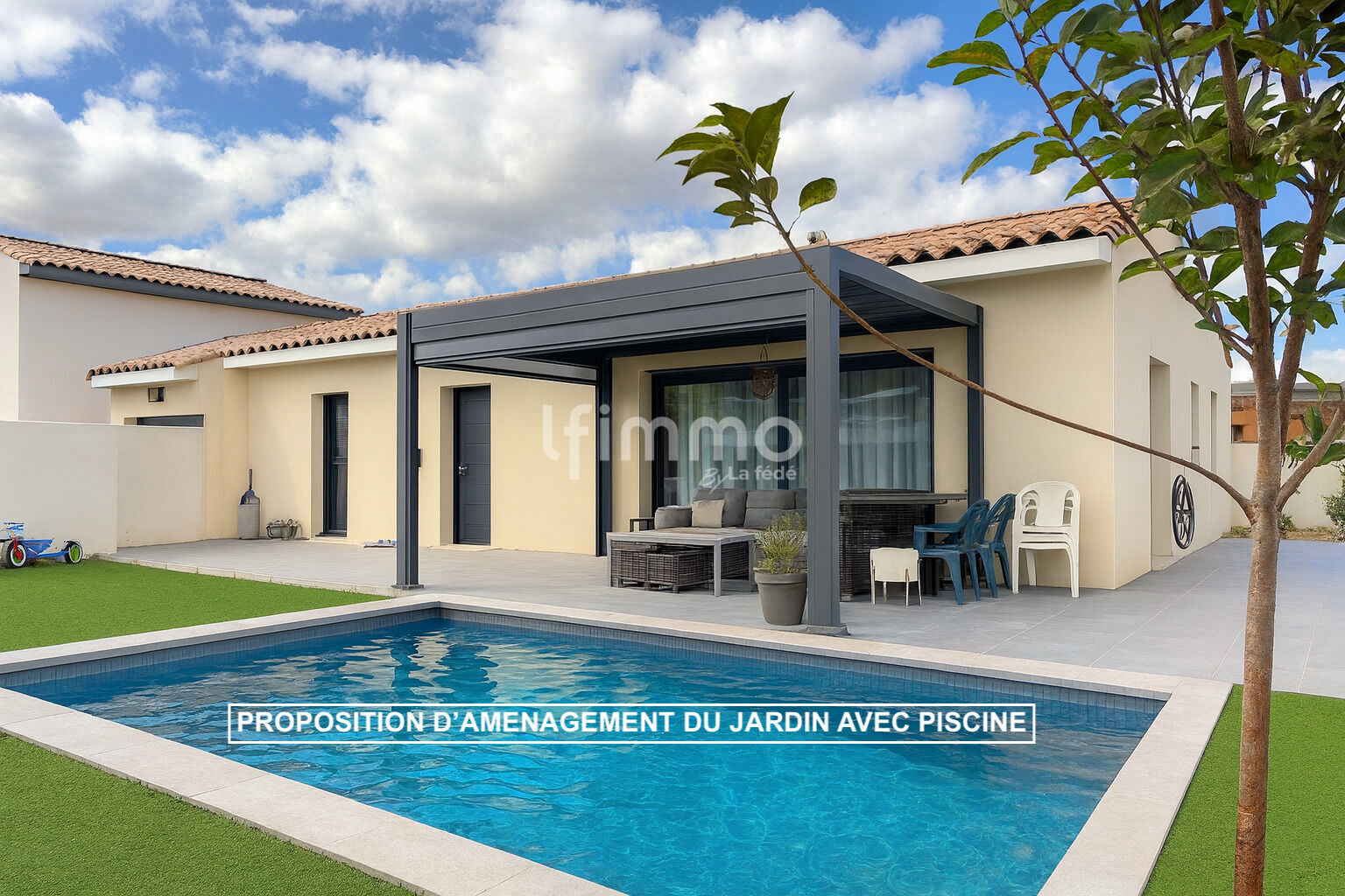 Maison neuve plain-pied à vendre à Moussan – 108 m² – 3 chambres – Terrain 400 m² – Pergola bioclimatique – Dpe A