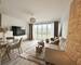 Dès l’entrée, un dégagement avec placards accueille et distribue les espaces. D’un côté s’ouvre une cuisine totalement équipée qui donne directement sur un balcon d’environ 5 m². De l’autre côté, le salon se présente lumineux et accueillant grâce à de larges ouvertures ; il s’ouvre également sur un balcon d’environ 5 m², offrant une belle continuité avec l’extérieur.