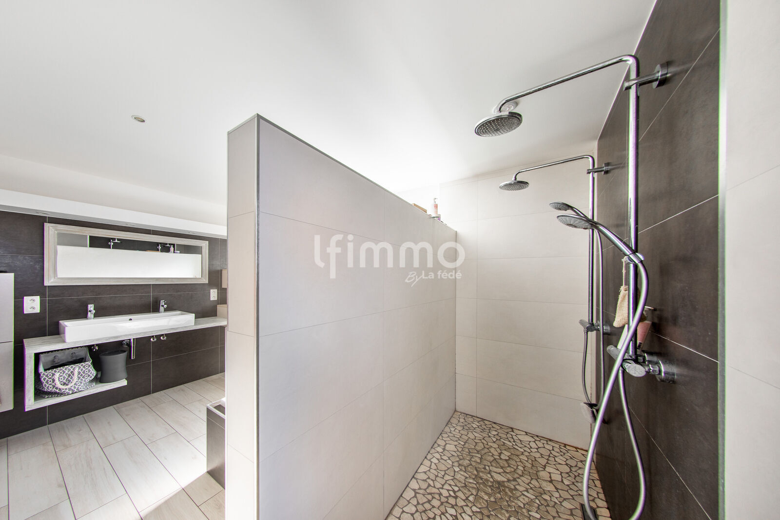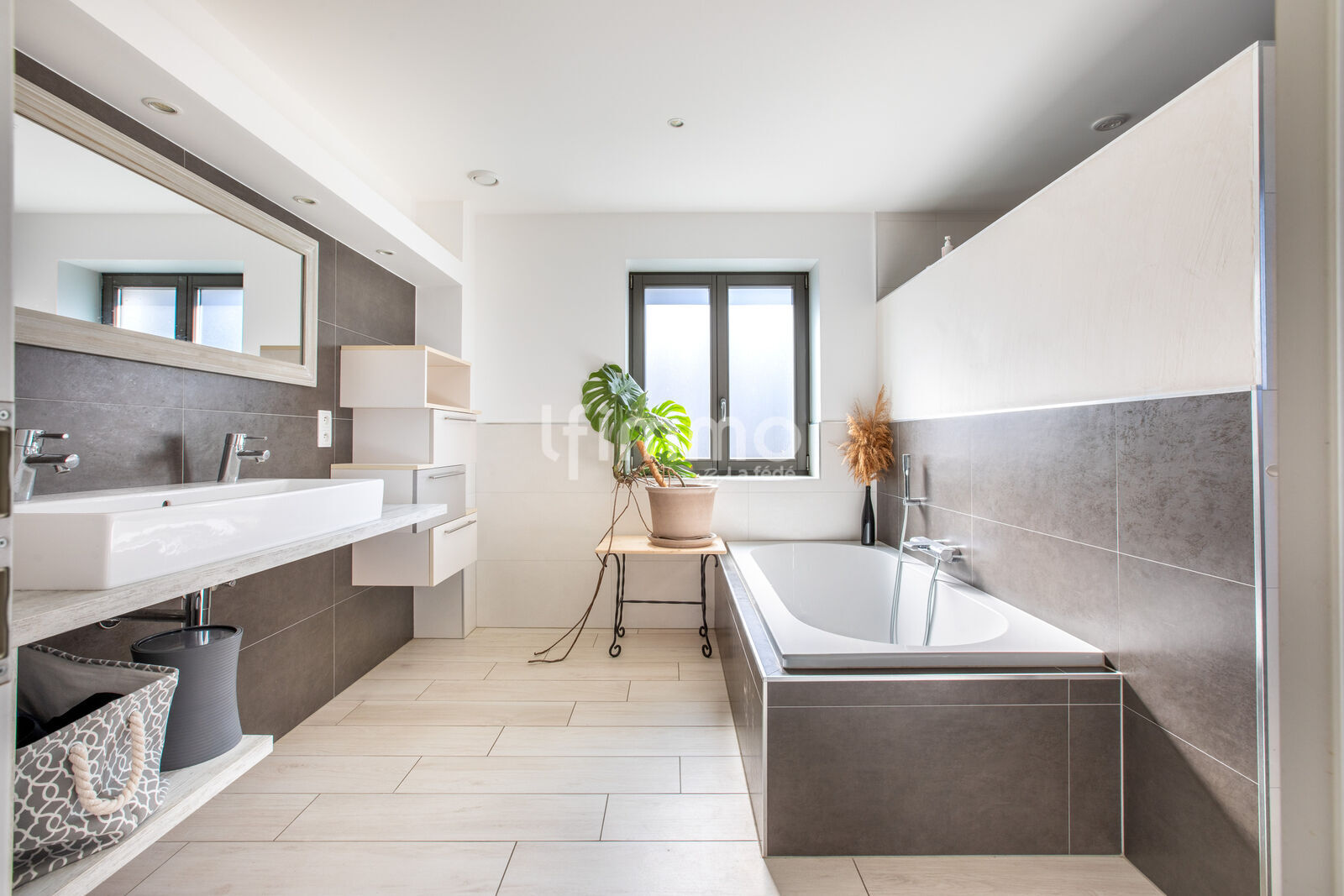 Pour parfaire cet étage, une salle de bains aux allures de spa vous attend. Dotée de beaux volumes, d'une baignoire propice à la détente et d'une douche spacieuse, elle a été pensée pour votre bien-être quotidien.