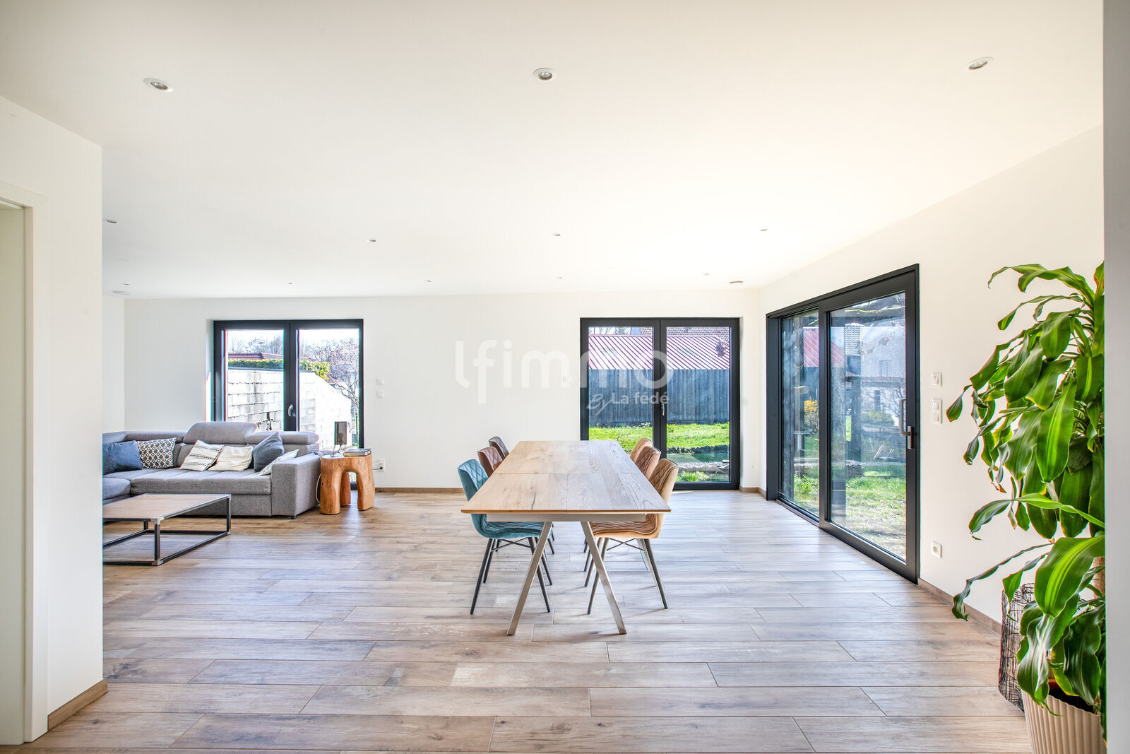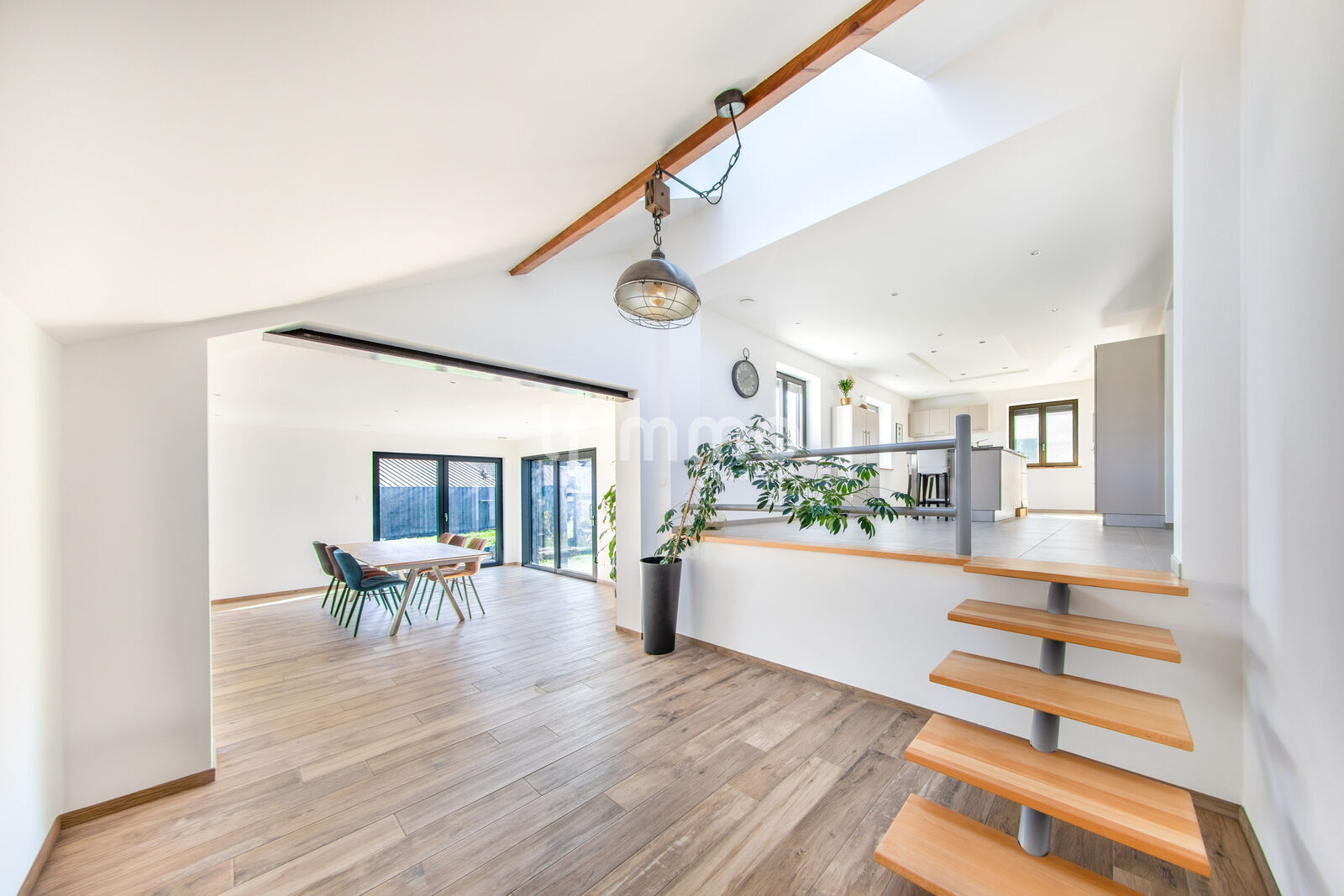 Grâce à une extension architecturale parfaitement intégrée, l'agencement a été optimisé pour offrir une fluidité de circulation remarquable.