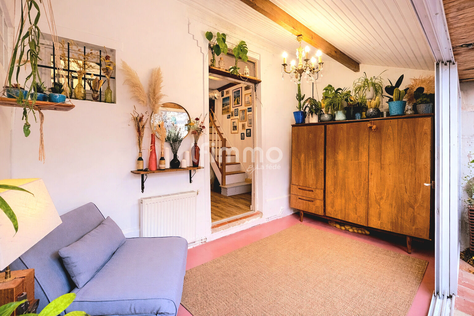 Dès l’entrée, vous découvrirez une petite véranda, très pratique au quotidien : rangements possibles, espace pour déposer chaussures, manteaux, poussette, etc.