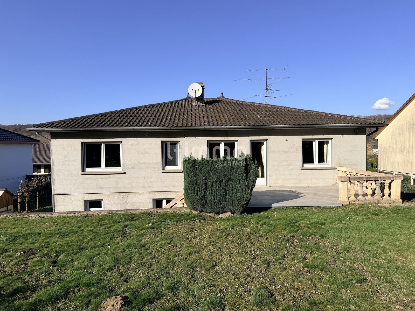Maison de plain-pied de 140m² habitable sur sous-sol complet.