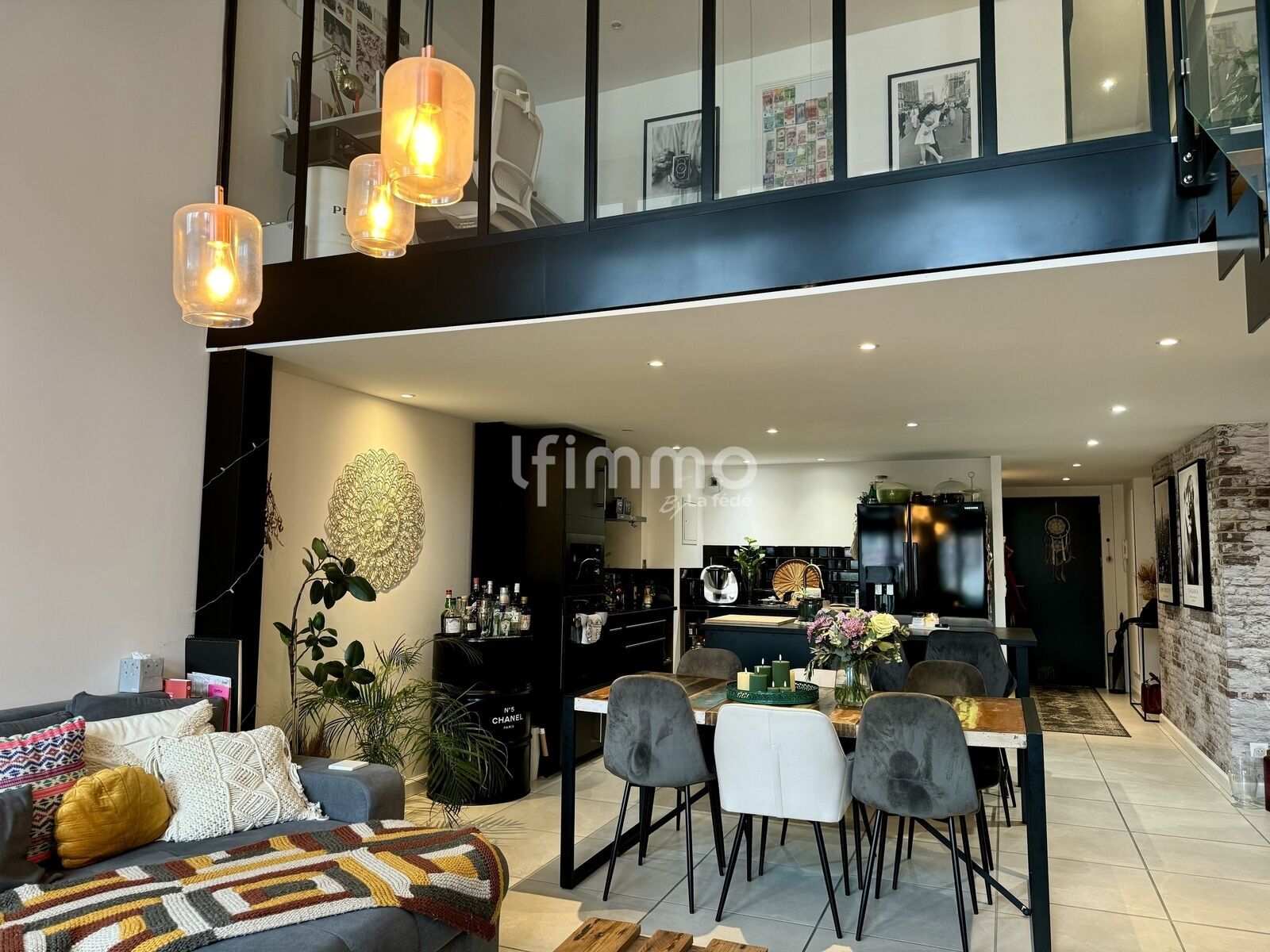 Décoré avec goût et qualité, le logement est composé d’une cuisine équipée ouverte sur la salle à manger et le salon.