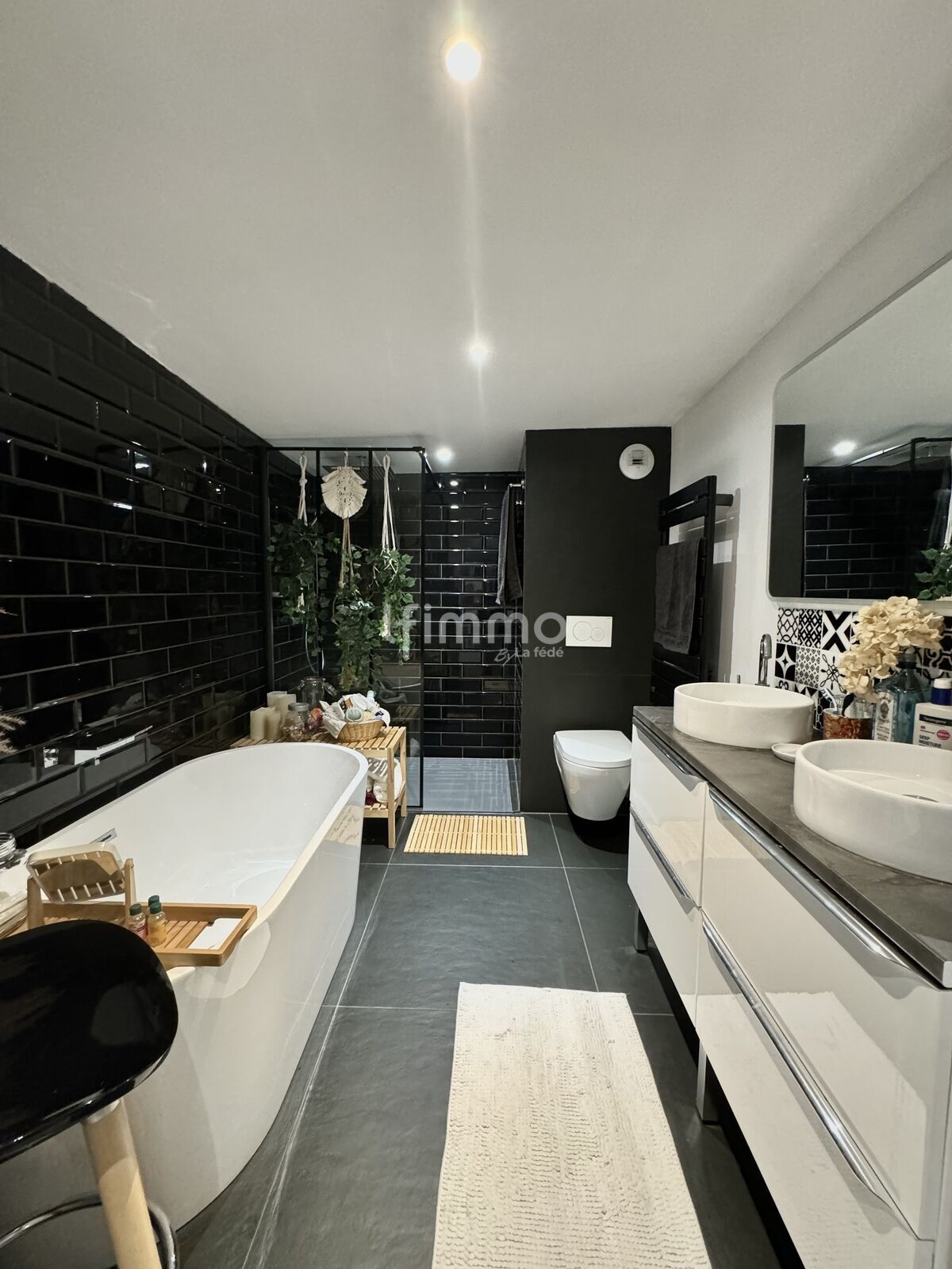 A l’étage, vous trouverez un bureau, une salle de bain avec douche à l’italienne ainsi qu’une chambre avec dressing.
