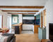 Matériaux nobles : Alliance parfaite de parquets massifs et de pierre naturelle (travertin).