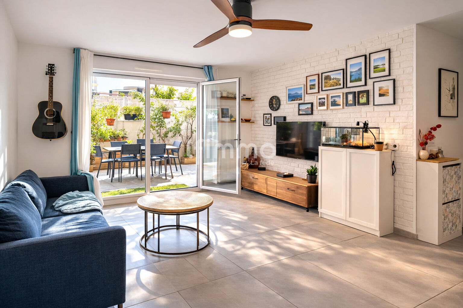 L’espace de vie s’ouvre sur une spacieuse terrasse de 25 m² orientée est, un véritable atout pour profiter d’un extérieur confortable au quotidien.