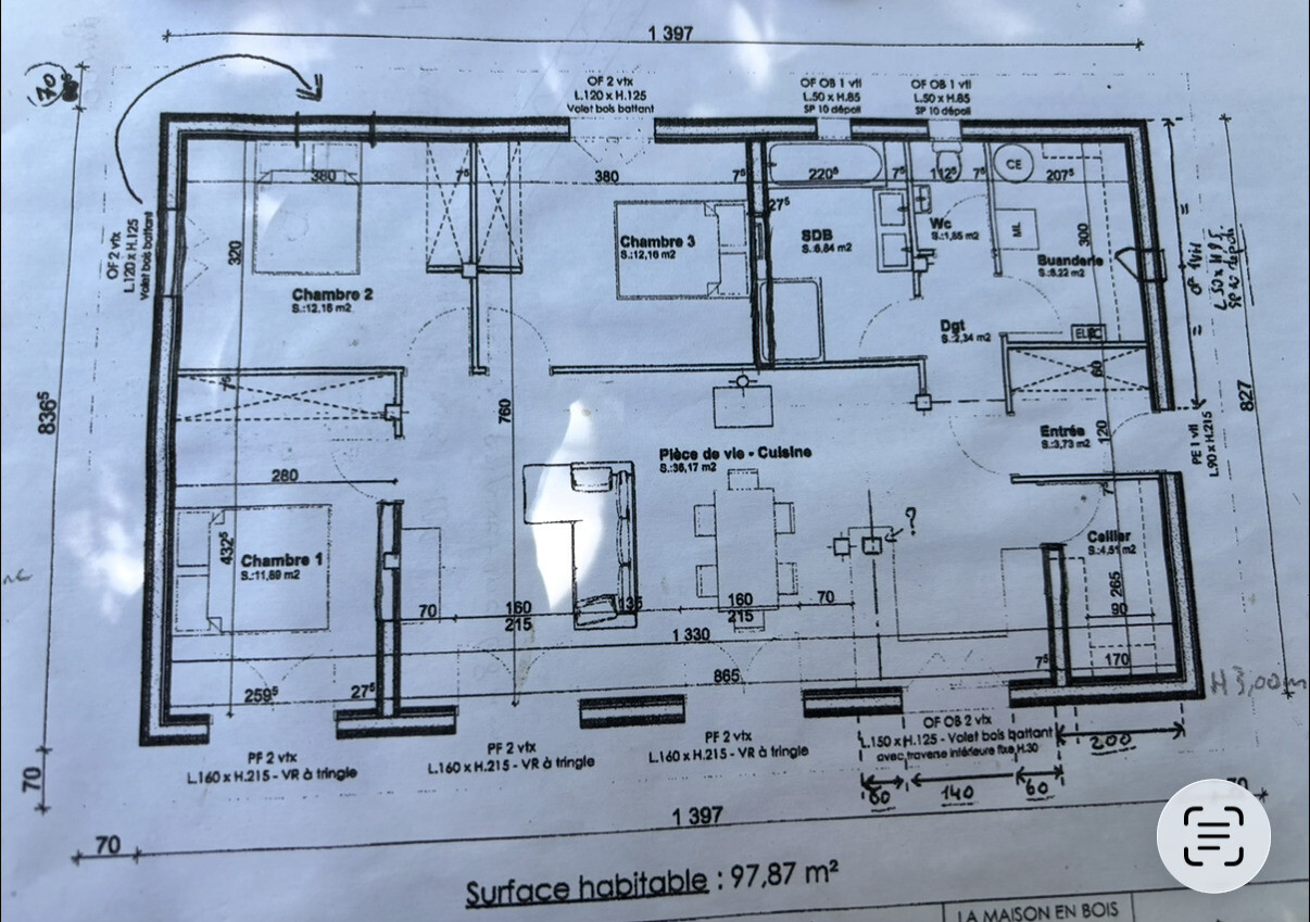 - Menuiseries PVC double vitrage (oscillo-battants dans les pièces d’eau)