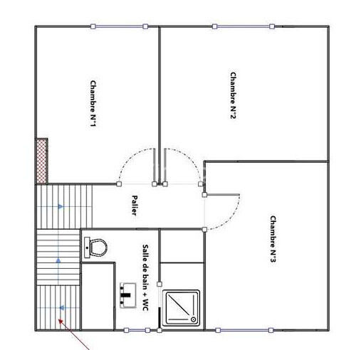 À l’étage, l’espace nuit propose trois chambres, ainsi qu’une salle d’eau moderne et des WC, offrant confort et praticité pour toute la famille.