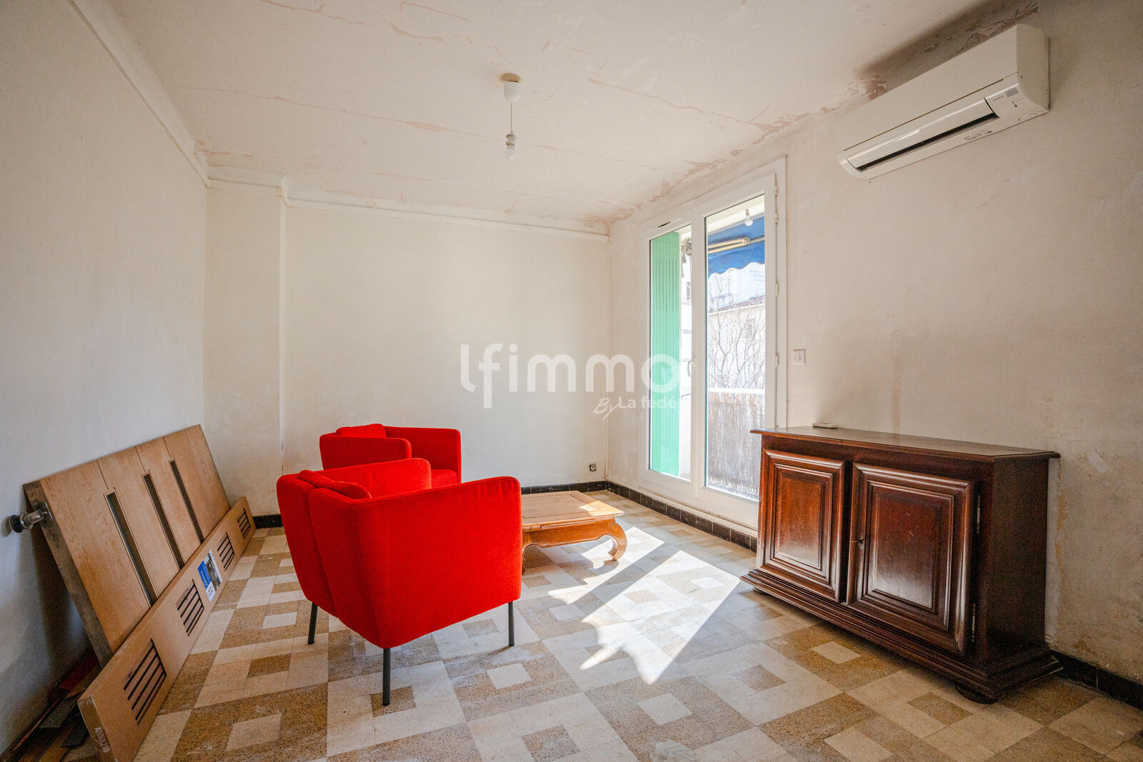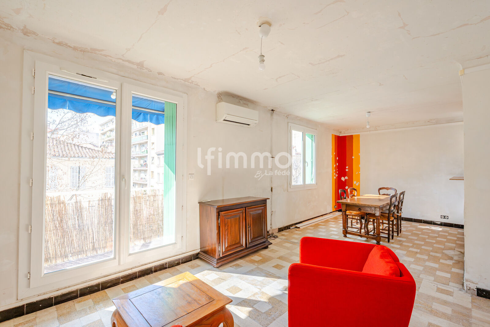 Cet appartement très bien agencé, déjà équipé des double vitrages et d'une climatisation réversible, est à rénover selon les goûts des futurs occupants.