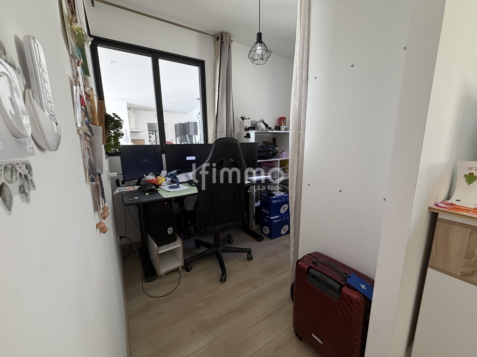 L’espace nuit comprend quatre chambres, ainsi qu’un espace dressing actuellement aménagé en bureau, agrémenté d’une verrière intérieure offrant une vue sur le séjour, apportant luminosité et cachet à l’ensemble.