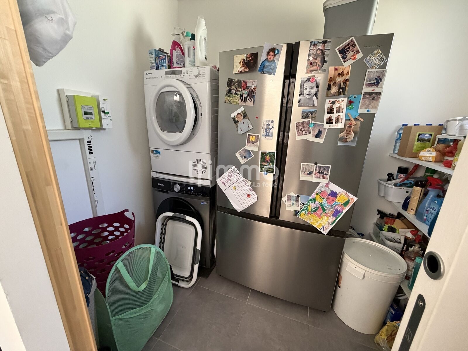 Une buanderie située derrière la cuisine complète les espaces fonctionnels de la maison.