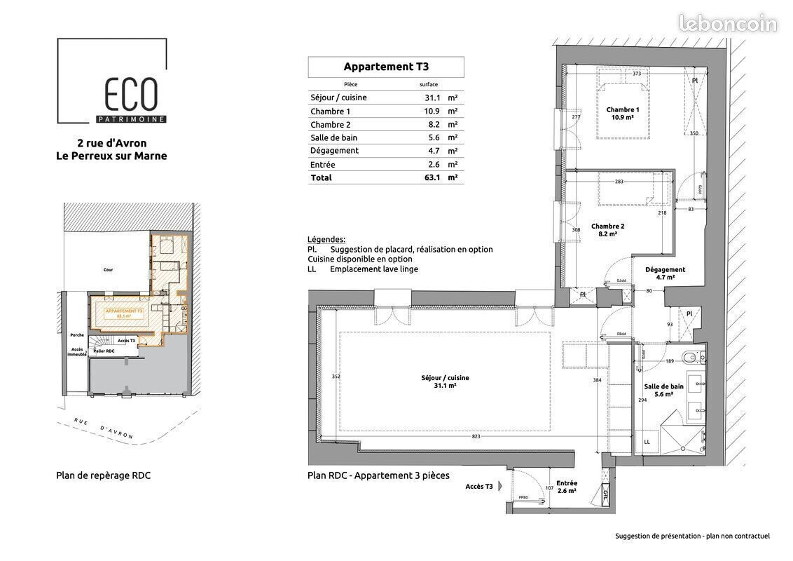 Alexia LF Immo vous présente ce T3 de 63 m² au cadre urbain, idéalement situé à quelques pas de la rue commerçante et à équidistance du Rer A et du Rer E.