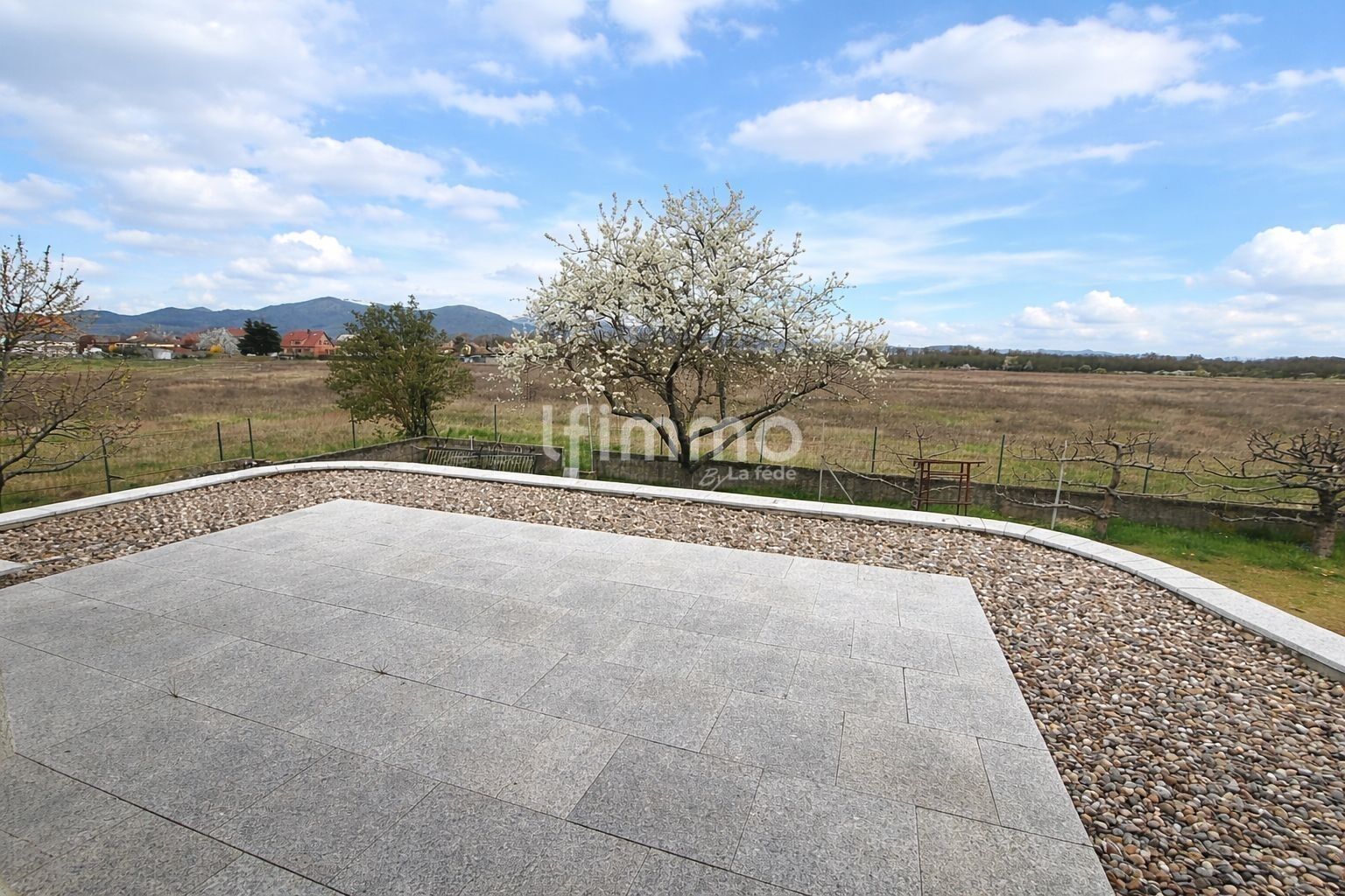 Terrain de 7,53 ares, au calme, sans vis-à-vis. Une grande terrasse avec store électrique pour vos moments de détente, offrant une magnifique vue dégagée sur les Vosges. Un cadre rare et privilégié au quotidien.