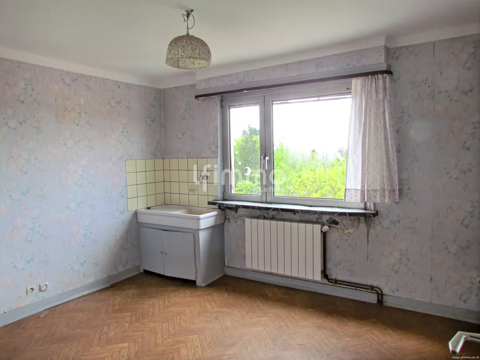 Maison de 1967 à rénover, 5 pièces, d’environ 110 m² habitables, avec une dépendance sur 2 étages et un garage, le tout sur une parcelle de 7 ares avec vue dégagée.