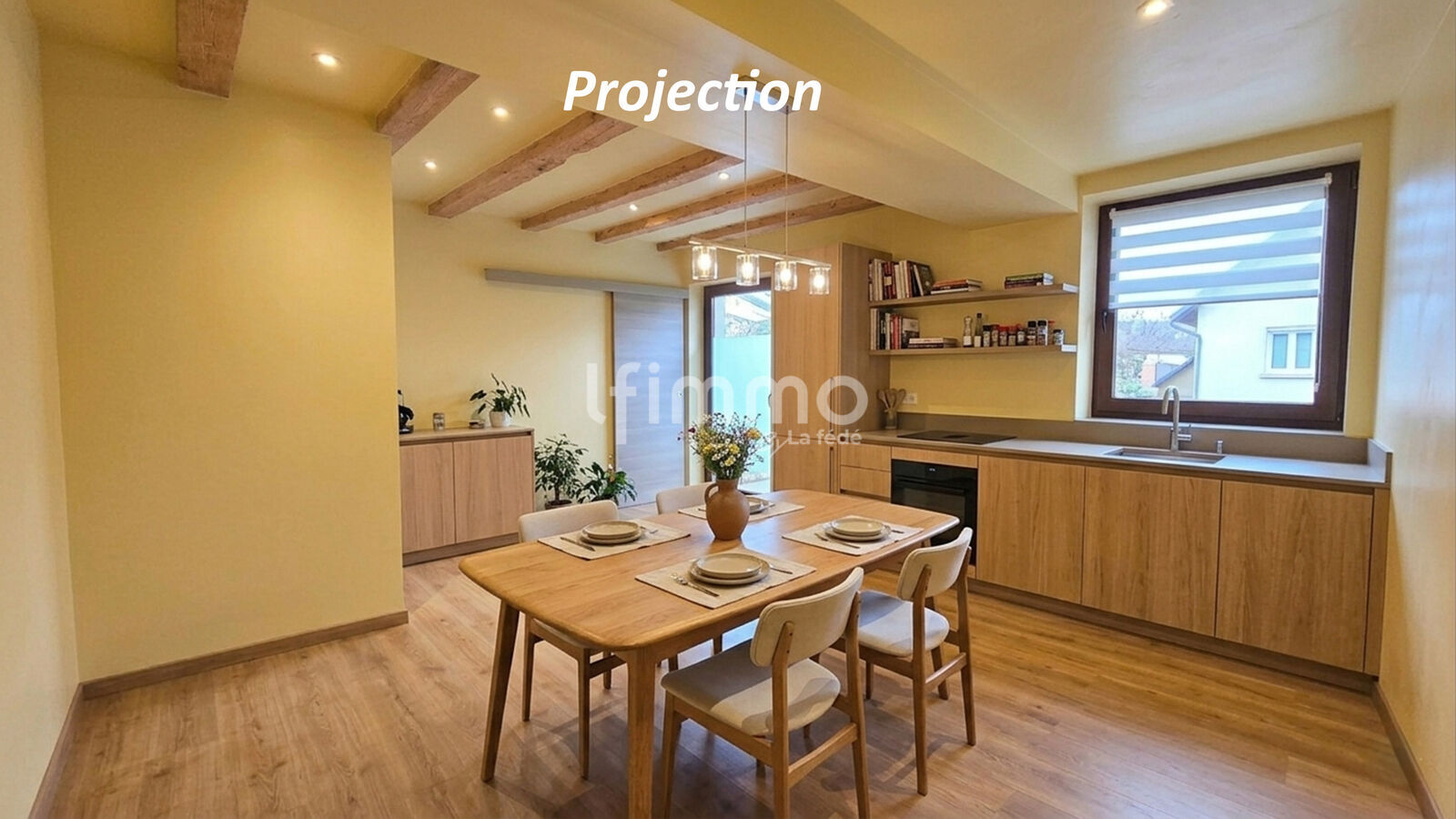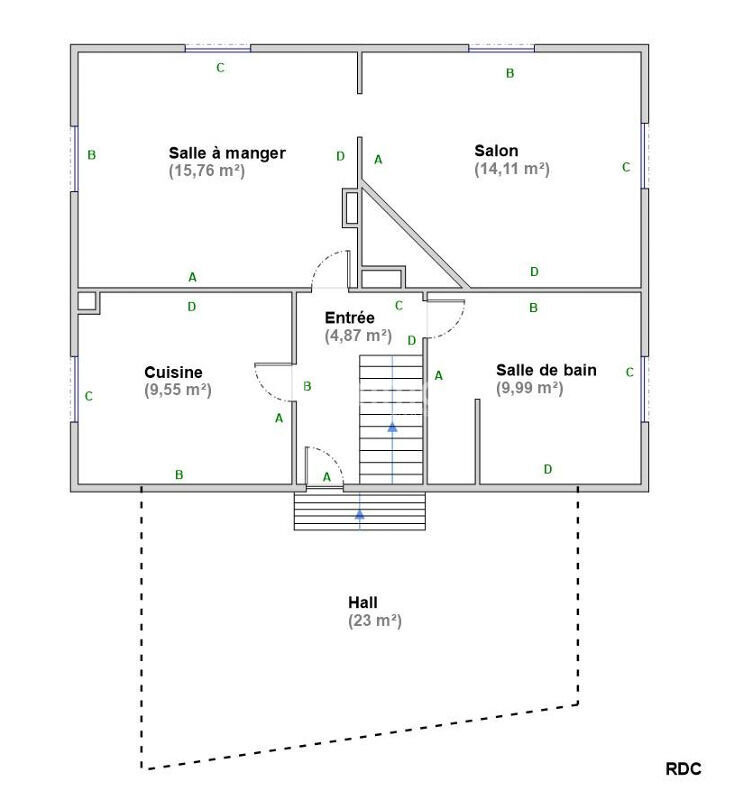 • Au rez-de-chaussée : Une entrée, une cuisine, un salon séjour lumineux, une salle à manger et une salle de bain avec un WC.