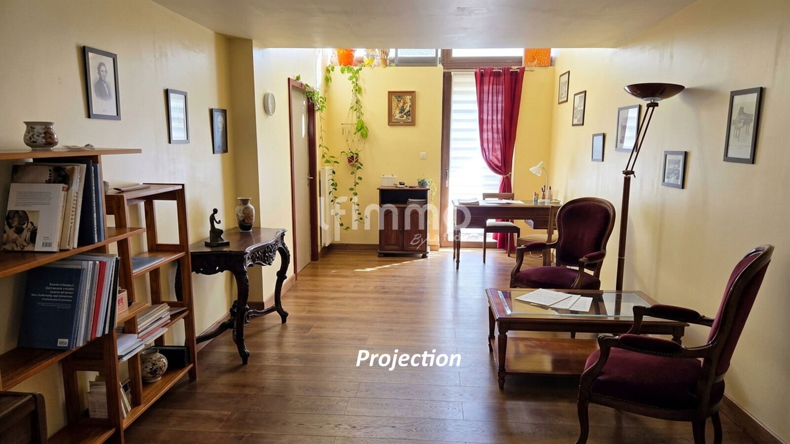 • Partie déjà aménagée (55 m²) : Ancien local professionnel (salle de musique 22 m², salle d'attente 11 m², pièce de 20 m² et WC). Chauffage électrique.