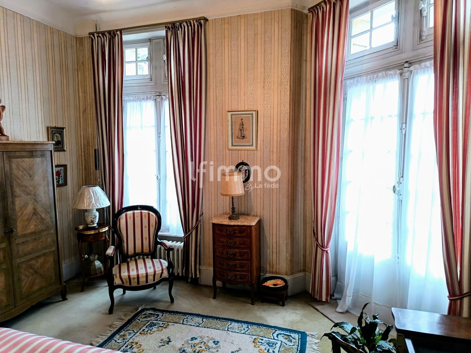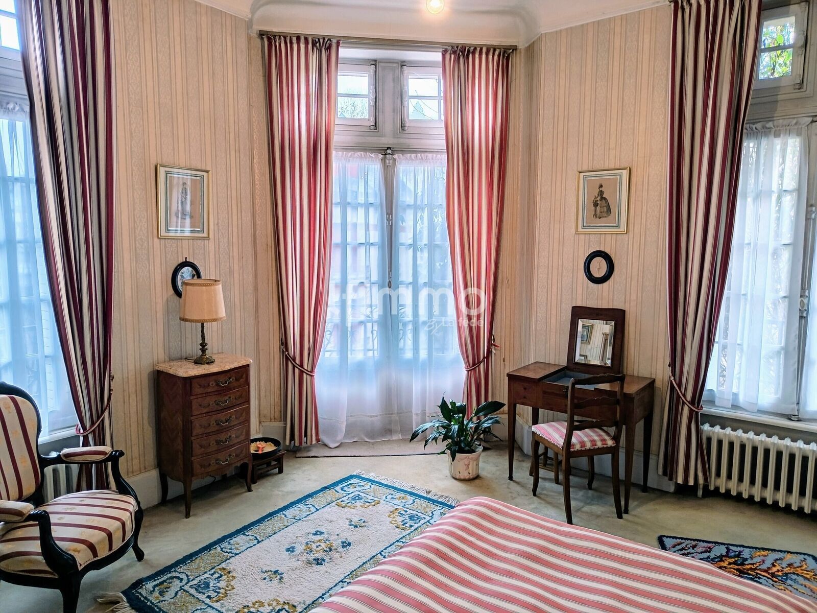 Aux étages, 5 chambres : chaque chambre possède son propre cabinet de toilette avec lavabo et bidet, comme autrefois et avec parfois des éléments de décors Art Déco. Une salle de bain d'époque est présente également.